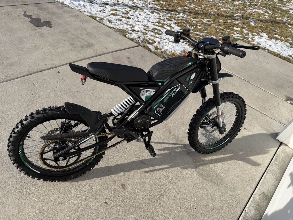 For sale are two off-road electric dirt bikes, fully assembled and in like-new condition. These are 48V electric pit bikes with strong torque and a solid range — great alternative to gas without the noise or maintenance.