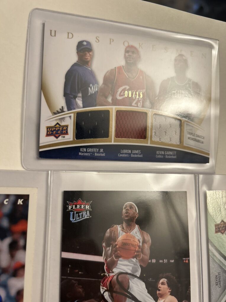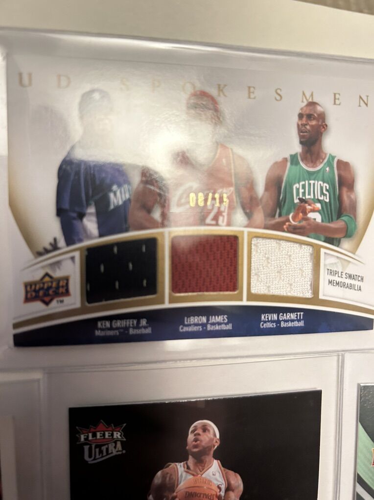 ApplePayTRIPLE Upper Deck Game Used Jersey card by KEN GRIFFEY JR LEBRON JAMES KEVIN GARNETT
