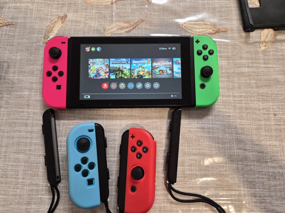 VenmoNintendo Switch – Newer Model (Improved Battery) Serial Number: XKW50074159364 This is the 2019 “Newer Model” Switch (HAC-001(-01)) with 4.5–9 hours of battery life, longer than the original 2017 model. Fully compatible with all Switch games, Joy-Cons, and accessories. Excellent conditions no damage. Includes: Dock & power/HDMI cables 4 Joy-Con controllers 4-port Joy-Con charging dock Carrying case (fits console, controllers, game cards) Everything works perfectly Local pickup only. $280 OBO Games sold separately, bundle discounts available if you buy multiple items.