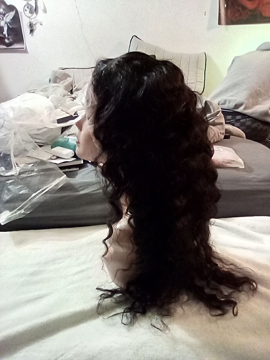 CashApp100% Real Human Hair Front Lace Deepwave Black Wig 26"