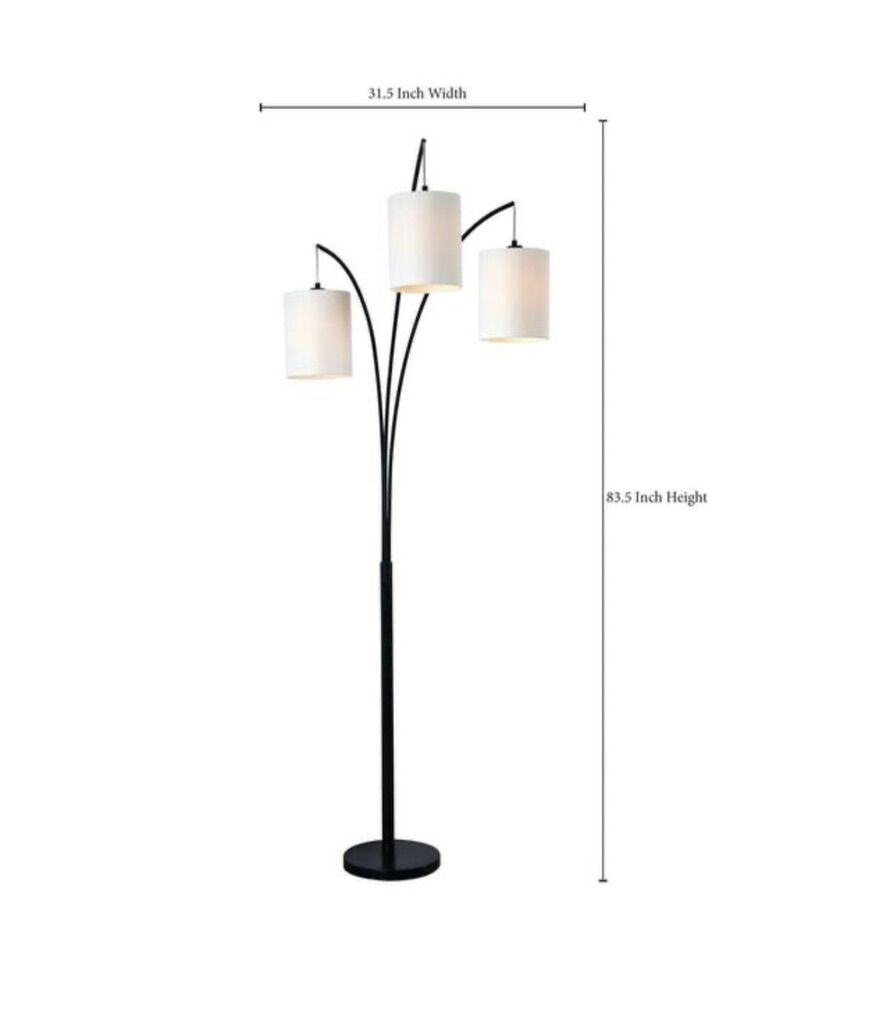 VenmoKenroy’s Leah black 3- light arch floor lamp with linen shades. New in box,opened for picture only. Measures 83.5 inches tall.
