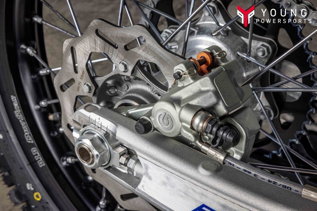 Assembled with CNC-machined hubs, strong spokes, and black-anodised alloy rims by EXCEL, the wheels of the TC 250 are fitted with DUNLOP GEOMAX MX33 Motocross tyres which feature a proven block-within-a-block design for more progressive cornering and superior grip. For improved on-track agility and stability through ruts, the TC 250 is fitted with a 110/90-19 rear tyre while a 80/100-21 front tyre ensures optimal handling on a variety of riding surfaces.