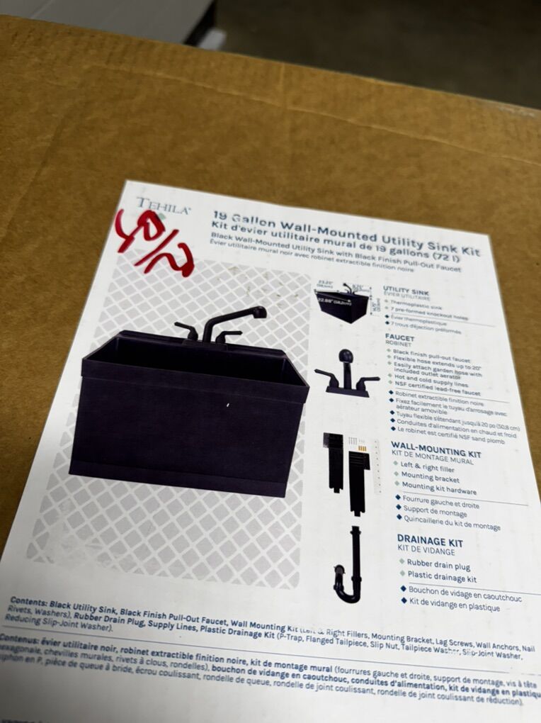 VenmoJS Jackson Supplies Tehila Black Wall-Mounted Utility Sink Tub Kit with Matte Black Finish Pullout Faucet