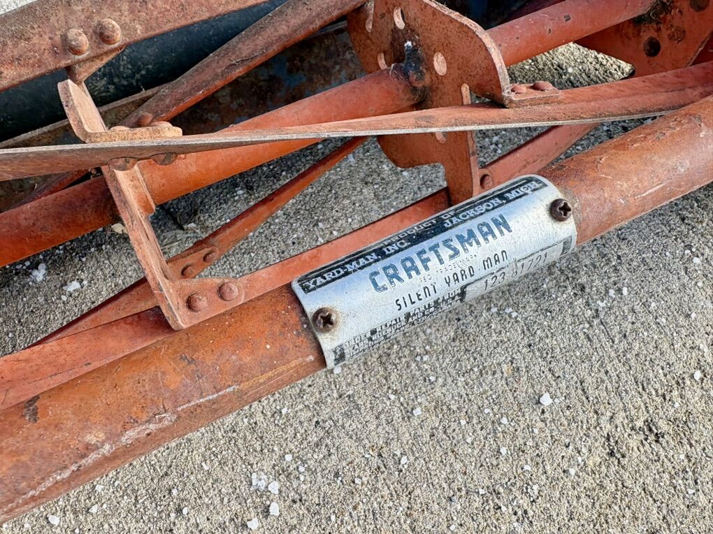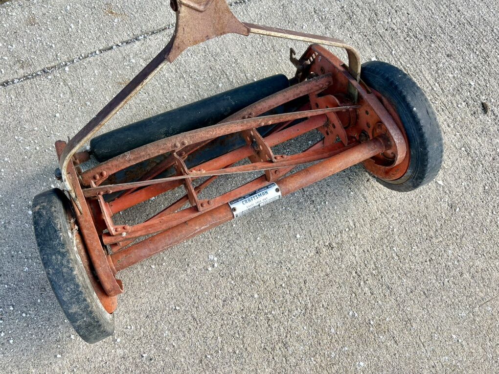 VenmoSolid metal quality antique Craftsman push reel lawnmower. Works excellently pushed smooth and blades cut well. Some normal surface wear patina based on age.