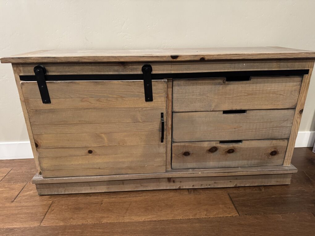 ApplePayModern farmhouse style console with drawers