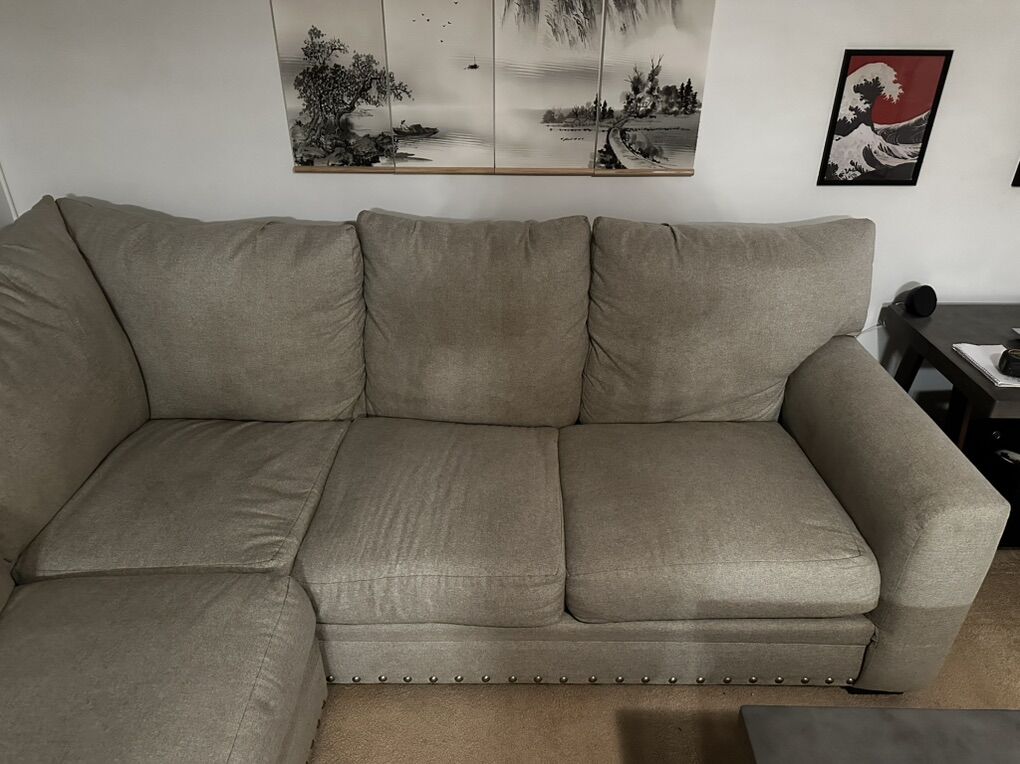 VenmoLight grey sectional from RCwilley. Two years old cleaned regularly no stains or tears non smoker. 150inX100inX40in $850 or best offer