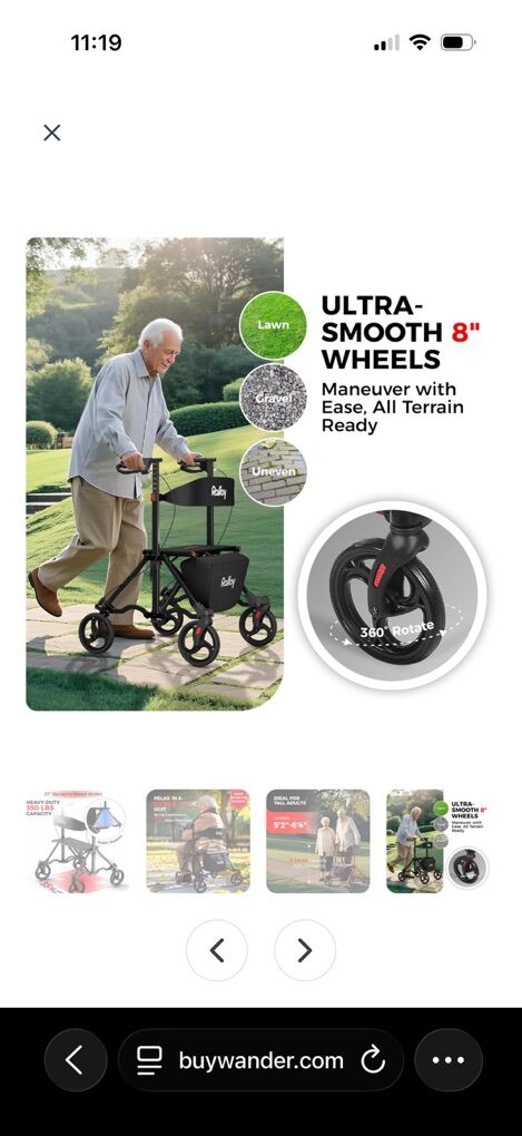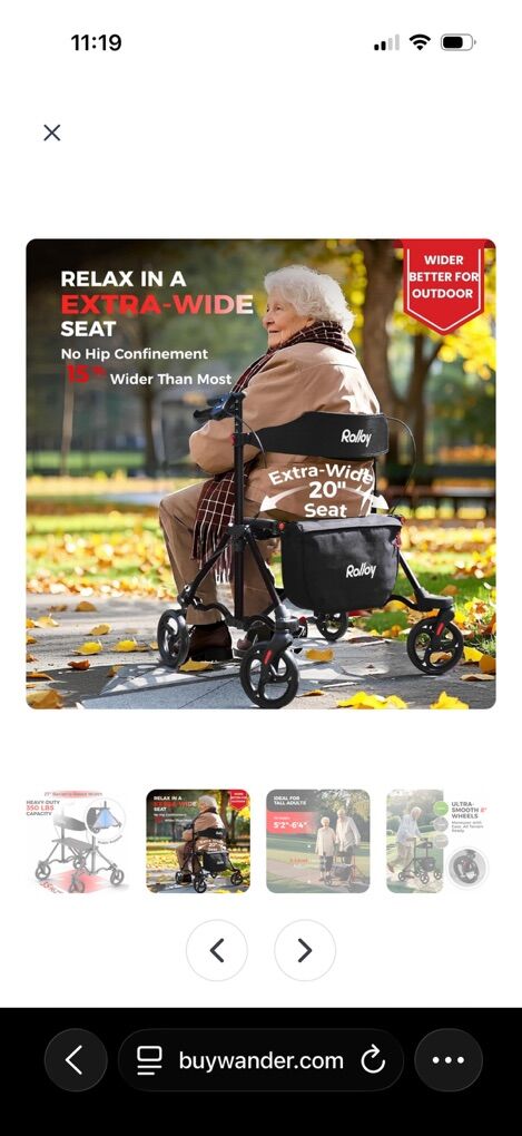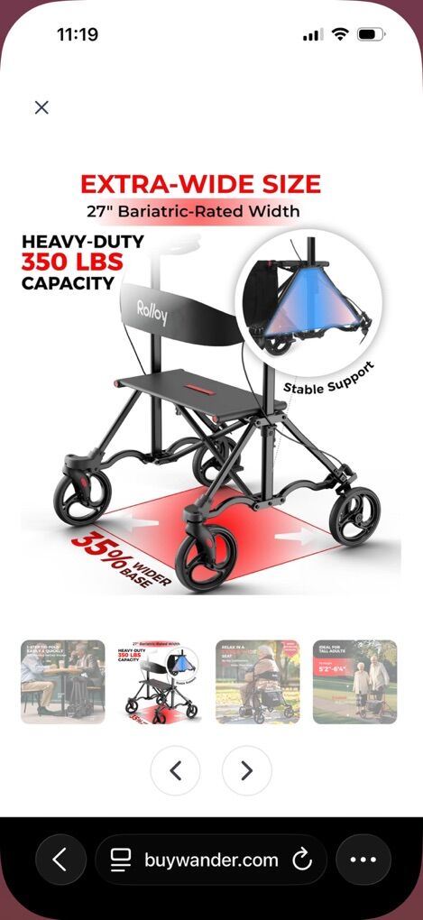 VenmoRollator Walkers for Seniors with Seat, Aluminum Ultra-Compact Travel Rolling Walker, 350lbs Capacity, 20 Extra-Wide Seat, Heavy-Duty, Easy Folding, Height Adjustable for Tall over 6ft, 8 Big Wheels Black Extra Wide 2200RW. MSRP $219.00