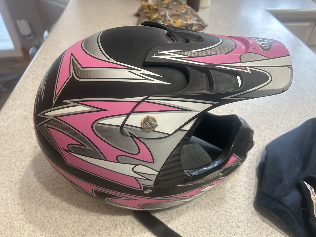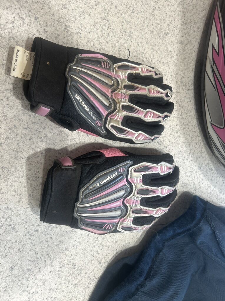 VenmoUsed but good condition women’s size medium Mojave Vega full face ATV/UTV helmet with matching 1Storm size small gloves. They were my daughter’s, but she doesn’t ride anymore. Buckle, visor, Velcro on the gloves, etc. all work fine. Includes bag/cover.
