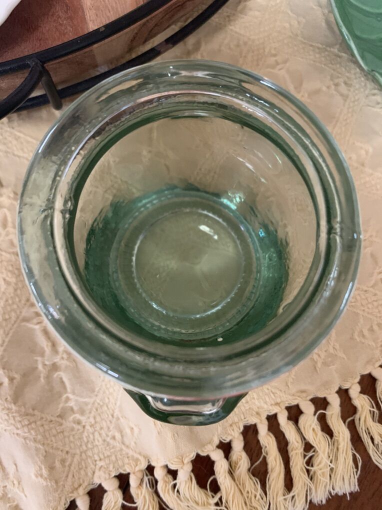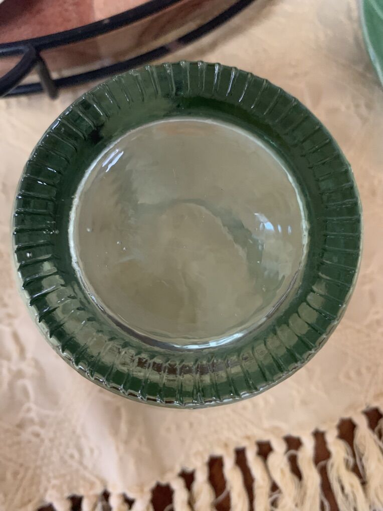 VenmoBen Rickert Heavy Green Glass Jar or Vase Made in Spain. This jar has an urn or pot shape with two small, molded ear handles on the sides. It is made of a heavy, tinted green or apple green glass. Made in Spain, this heavy glass jar is perfect for holding flowers or other decorative items. Put it in your home now. 4 1/2”H x 5”W x 13”circumference. No chips or cracks. Clean and ready to go. Non-smoking/no pet home