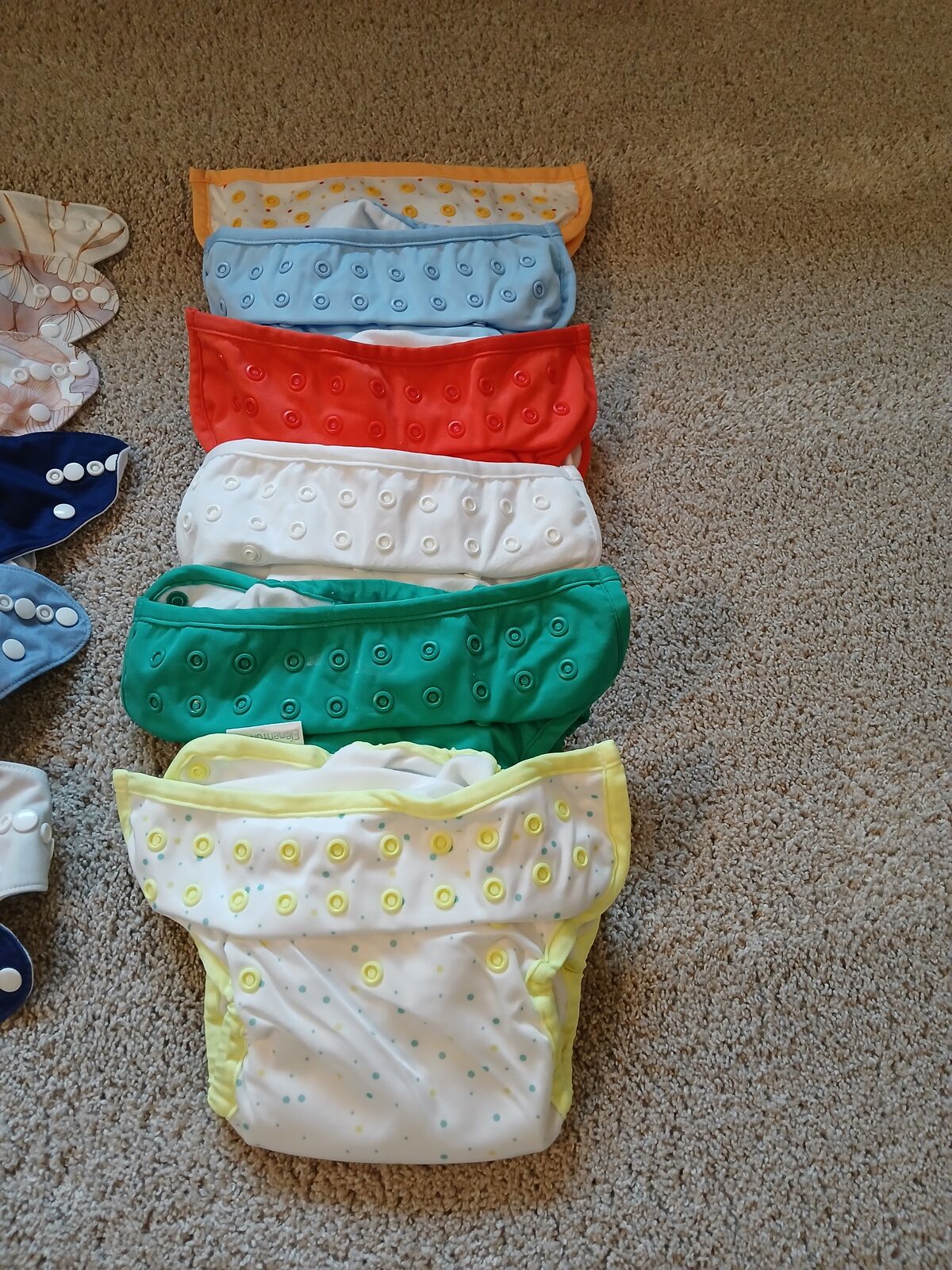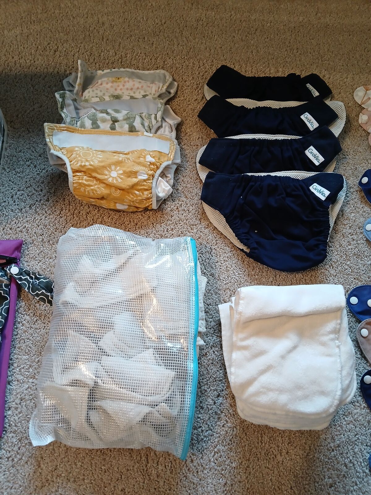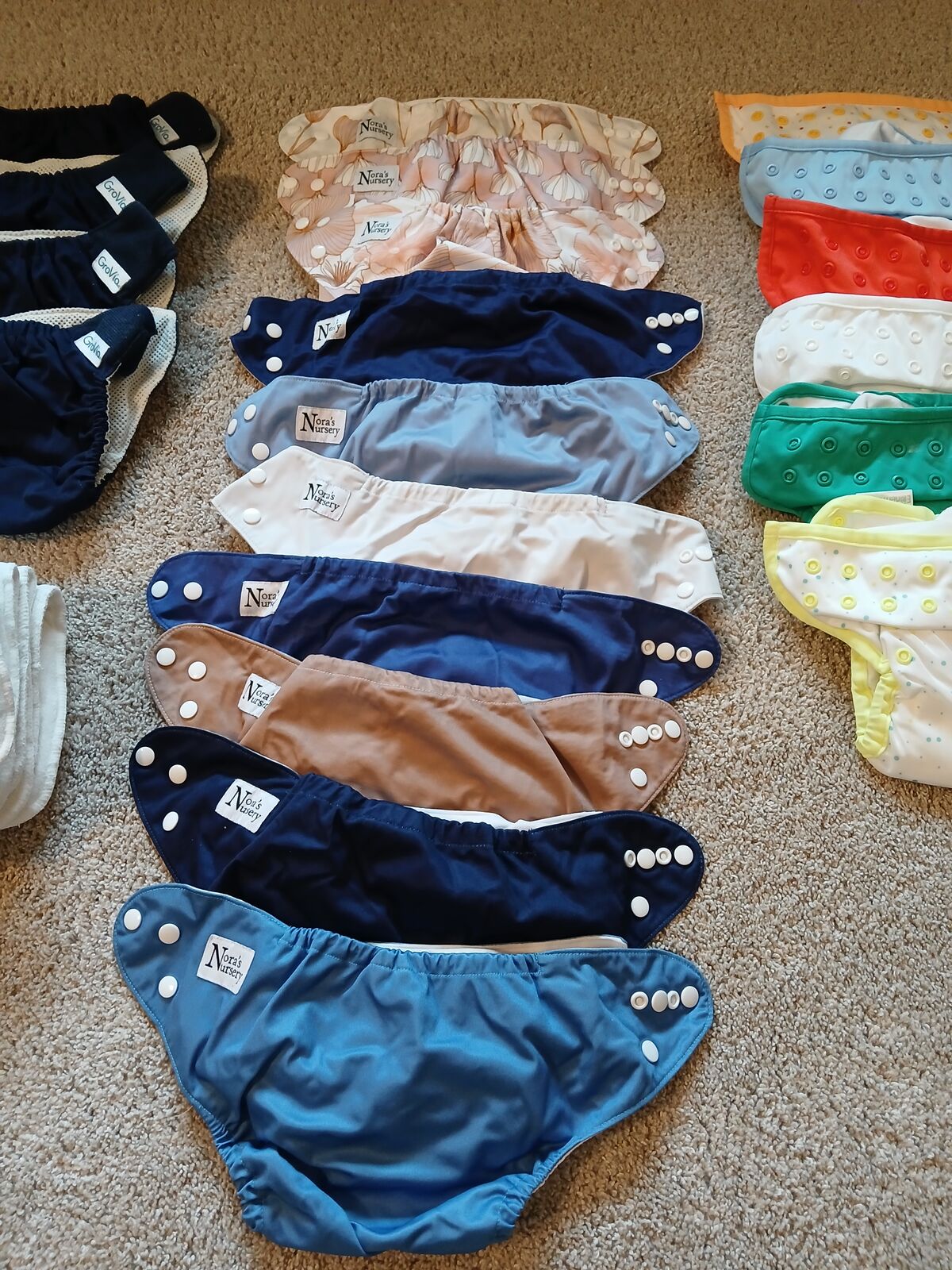 Venmo23 gently used cloth diapers with 15+ liners, cloth diaper bucket, and 2 storage bags. 6 Elemental Joy diapers 10 Nora's Nursery diapers 4 GroVia diapers 3 Honest diapers More than 15 liners 2 storage bags (Nora's Nursery & Elemental Joy), in addition to the see-through zipper bag pictured as well. No smoke or pets in the home. Please feel free to get in touch with any questions.