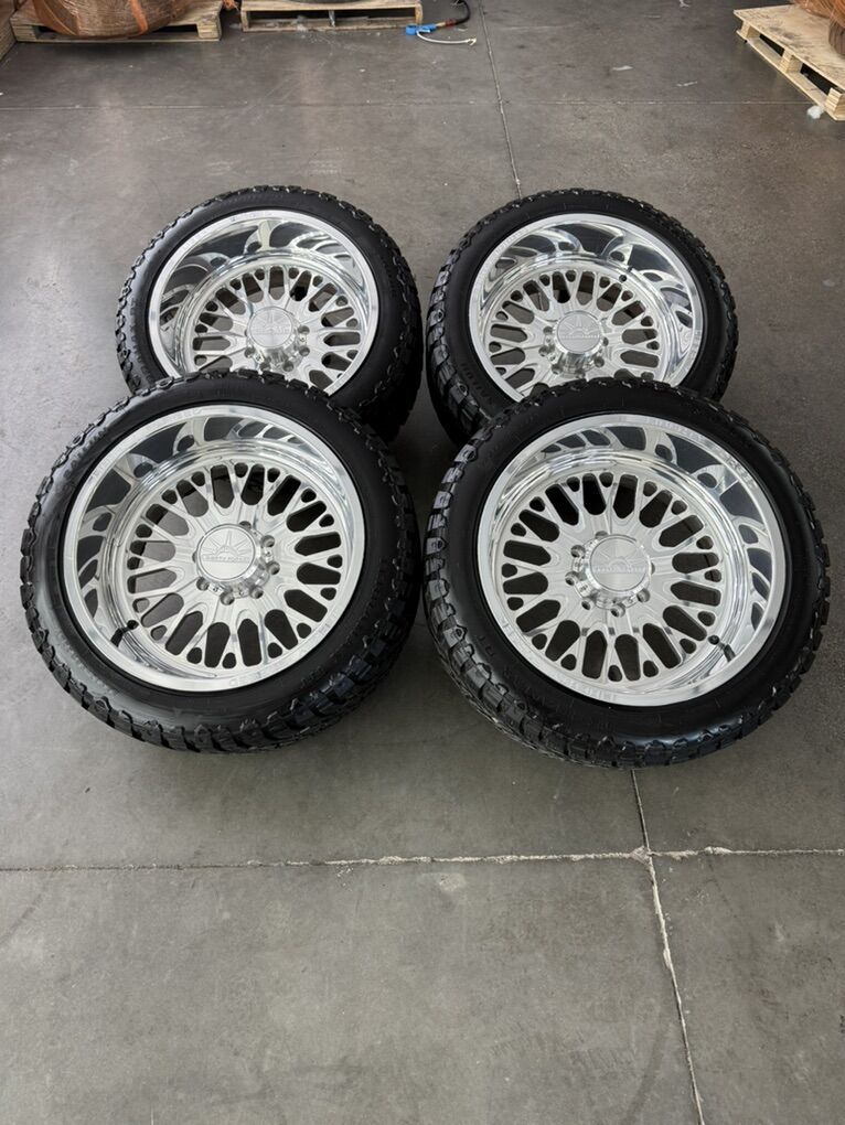 ZelleBRAND NEW LESS THEN 1,000 MILES 22x12 hardcore forged “10s” 33x12.50r22 sailun terrmax r/t tires