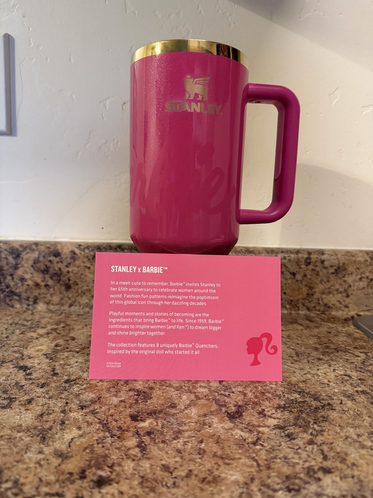 ZelleBrand new Stanley x Barbie™ 40oz Quencher in the iconic Barbie pink with gold rim. Limited-edition collaboration celebrating Barbie’s anniversary — sold out and hard to find.