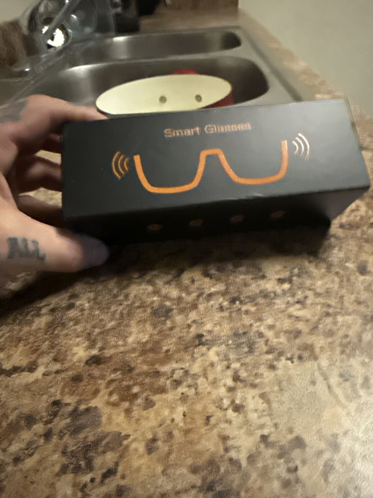 ZelleCool pair of smart glasses with a built-in camera and Bluetooth. Records hands-free POV video and has a classic black frame look with clear lenses. Super easy to use and a fun gadget for someone who’s into tech, biking, skating, fishing, or just cool accessories.