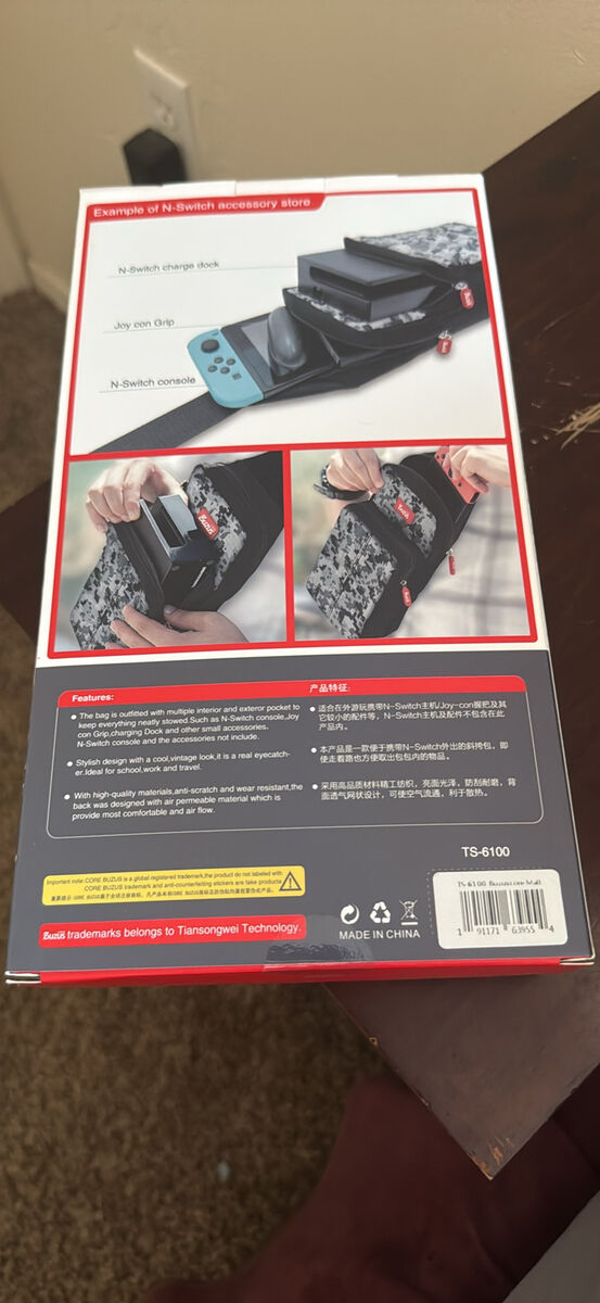 ZelleBuzus Core sling travel bag for Nintendo Switch or Switch Lite. Designed for gaming and electronics accessories. Comfortable sling style, multiple compartments, and durable material. Great for travel or everyday carry.