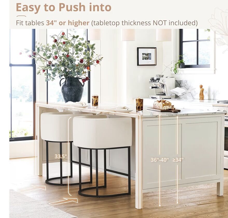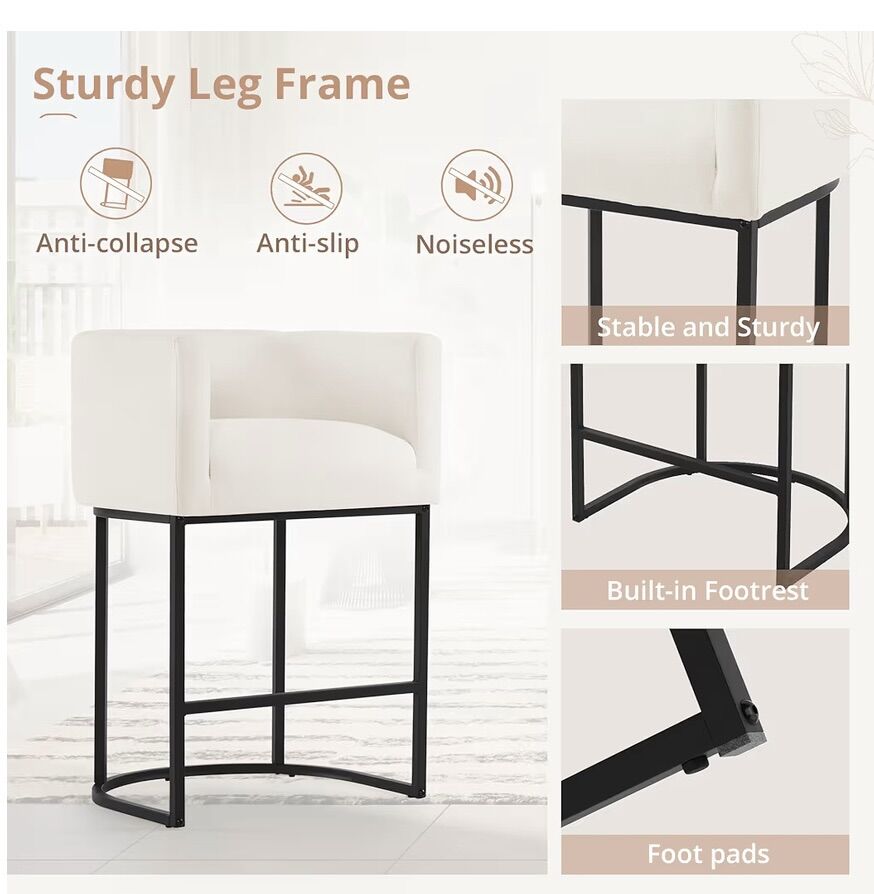 PayPalNew LUE BONA Counter Height Bar Stool, 26 H Modern Bar Stools with Barrel Backrest and Armrest, Linen Upholstered Kitchen Island Bar Chairs with Black Metal Frames (Beige) 1 chair only