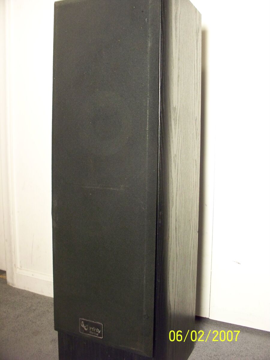 Infinity Sterling floor-standing speaker with 8" woofer, Infinity polycell tweeter, Sealed enclosure is heavily reinforced to eliminate unwanted resonance; black wood-grain finish in excellent condition. This model uses a rubber surround on the woofer which never needs "re-foaming." Dimensions: 33" high X 10.5" wide X 10" deep. Will mate with any speaker of comparable quality for stereo sound hard to beat under $600. Respond by email or phone 801 487-3047