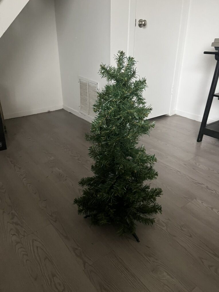 7 1/2 foot Christmas tree for sale $30 or best offer . Comes with a miniature Christmas tree as well .