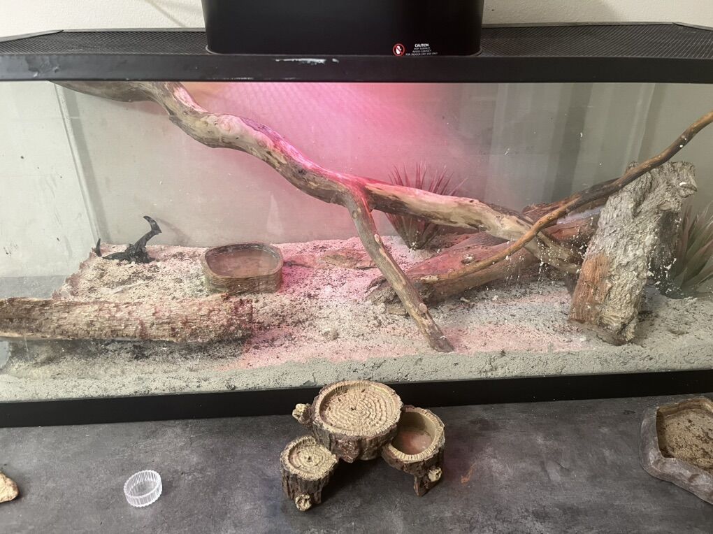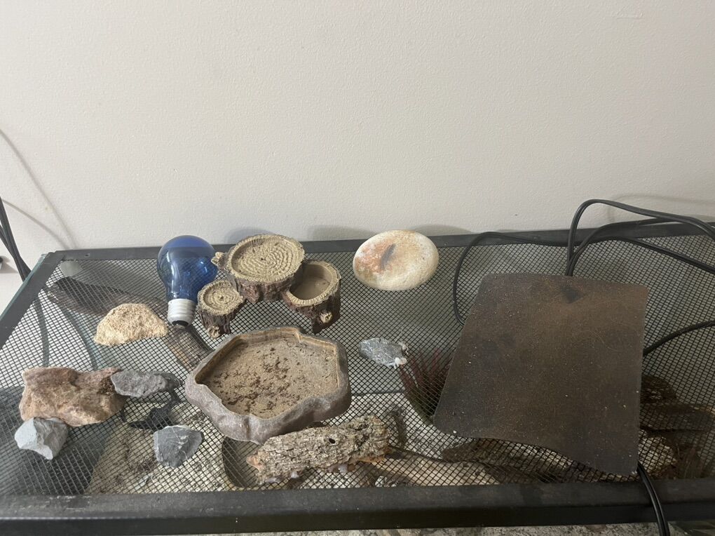 Male leopard gecko who needs a new home. Accessories include the tank, an enclosure for crickets and/or other insects, plants and wood for decor and hiding spots, a larger food/water bowl, a day and night lamp with dual dome, a replacement day lamp, and coconut fiber dirt if you want to switch from calcium sand. There’s nothing wrong with him, I just can’t take care of him anymore. His name is Cerberus, and he’s a Mack Snow morph. Texting is preferred, but I can do messages via Classifieds too.