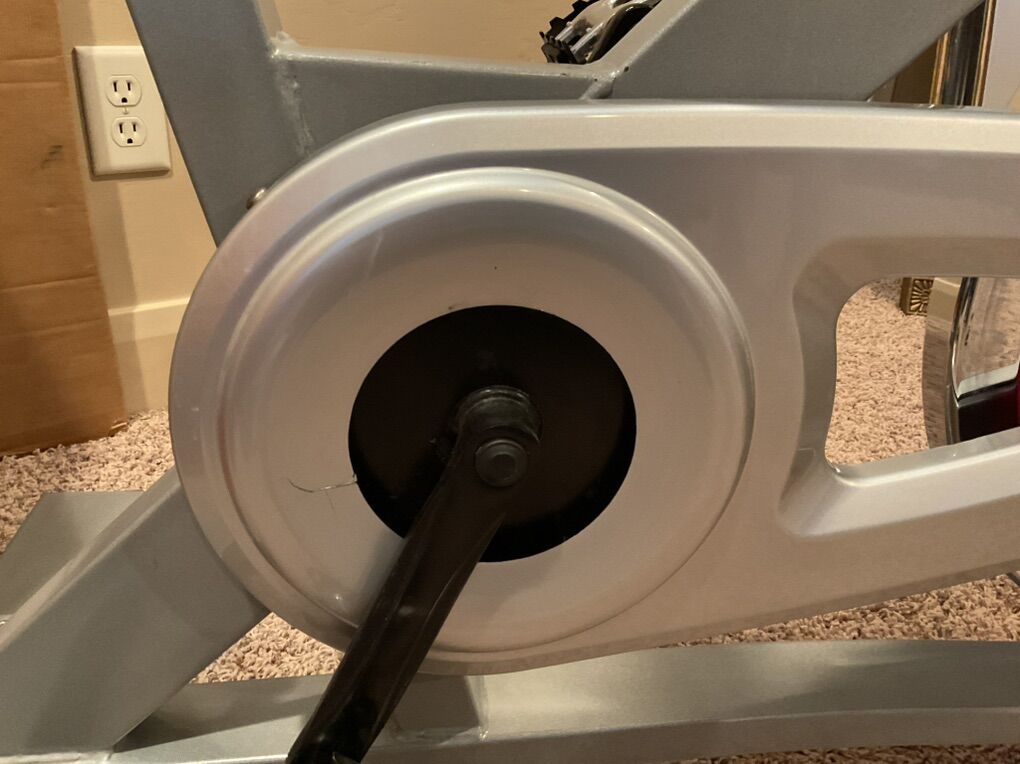 VenmoVery good working condition. Small crack in plastic casing by the pedal that doesn’t affect performance. Smooth and quiet. Works just like the spin bikes at the gym!