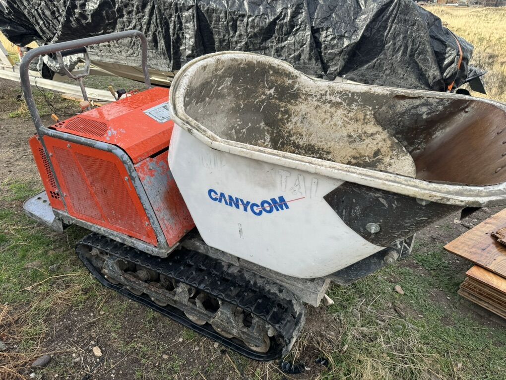 Tracked Canycom concrete buggy. Runs good. Both transmissions were rebuild in the spring as awell as a new engine installed. Dumps up and down and pivots left and right. Can include a small trailer for $500 additional