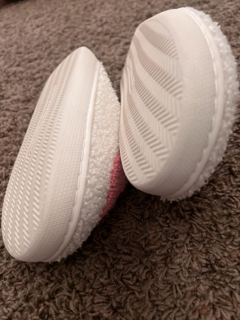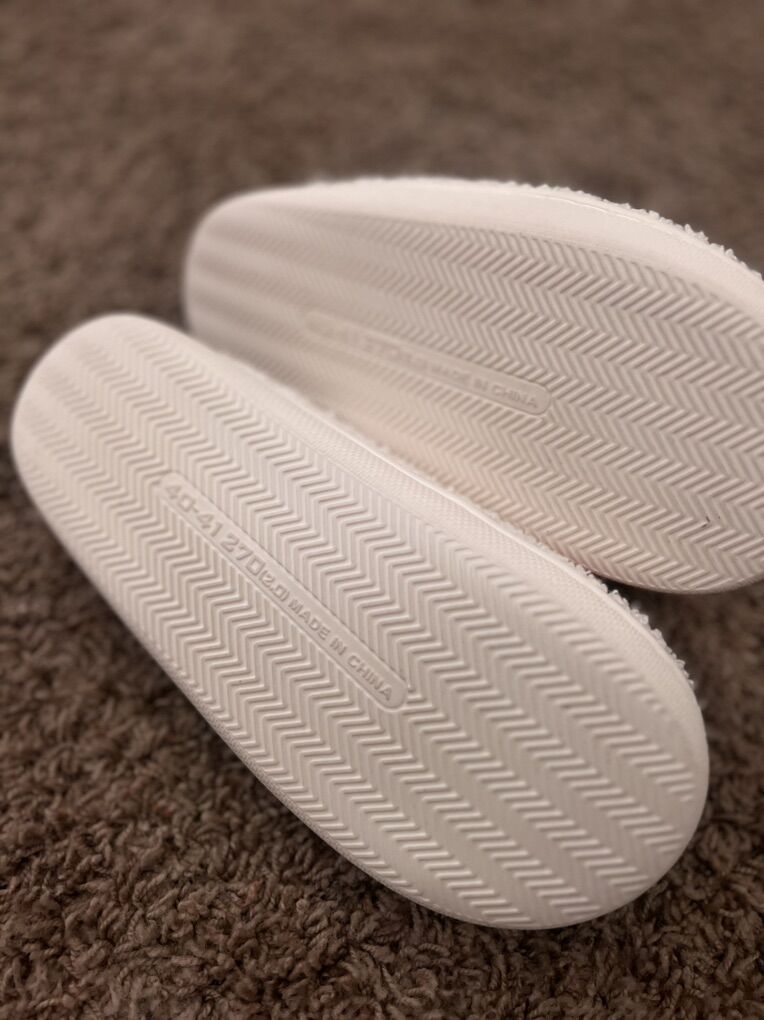 Smiley slippers. Have 2 pairs, one in crème ivory and the other in black. Womens size 40-41. Which’s around a size 7-8. Worn literally twice. Excellent new-like condition. Smoke-free home. See my other listings.