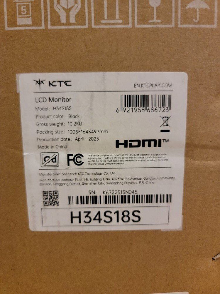 Brand New in box. 34" KTC ultra wide curved monitor. UWQHD 3440x1440, 165hz. Model # H34S18S. $195