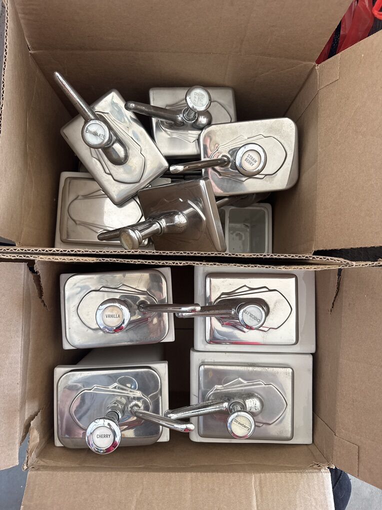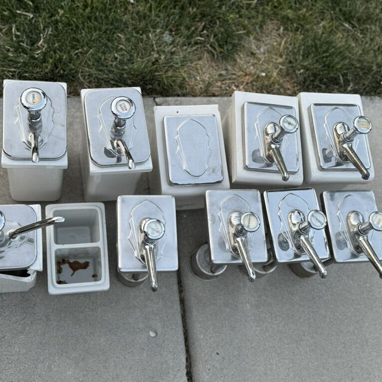 Venmovintage soda pump dispensers and jars. The one porcelain jar that’s broke in the picture is gone. Pick up Riverton $80