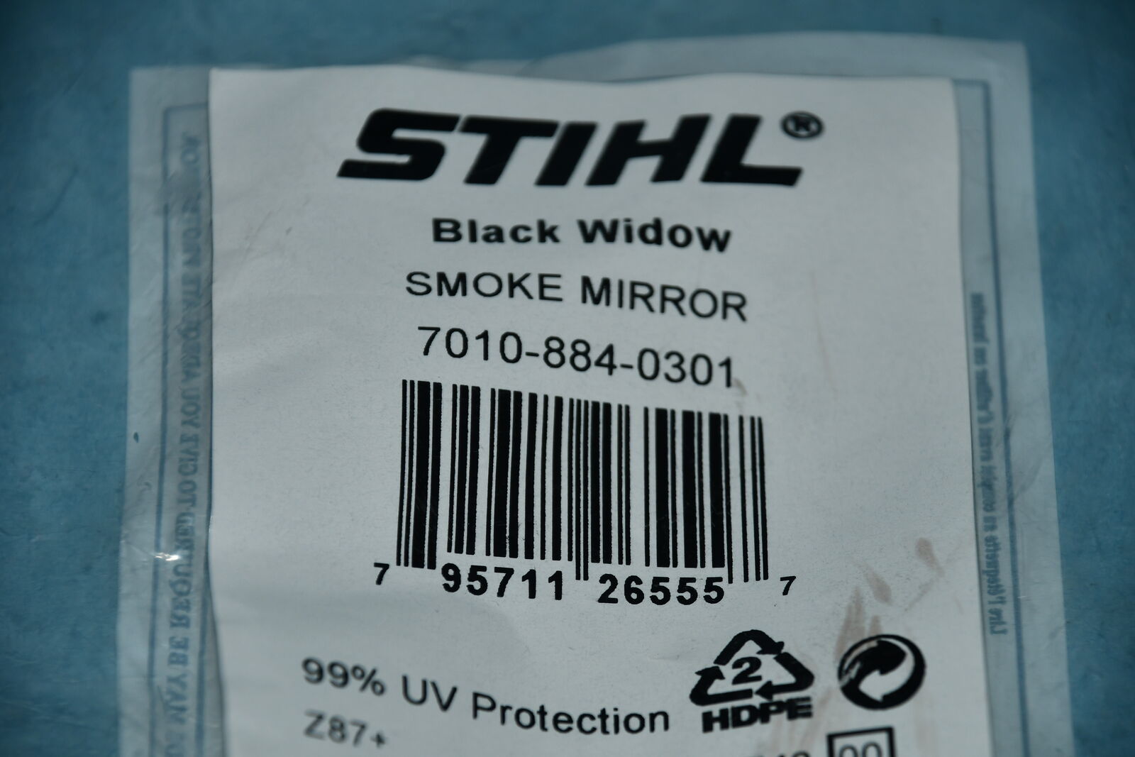 This NIP STIHL "BLACK WIDOW" SMOKE MIRROR GLASSES are from a smoke free home. They are #7010-884-0301. The package is open but they have never been worn. They have 99% UV protection. Questions??? Please ask. We are located in Plain City. Cash only please.