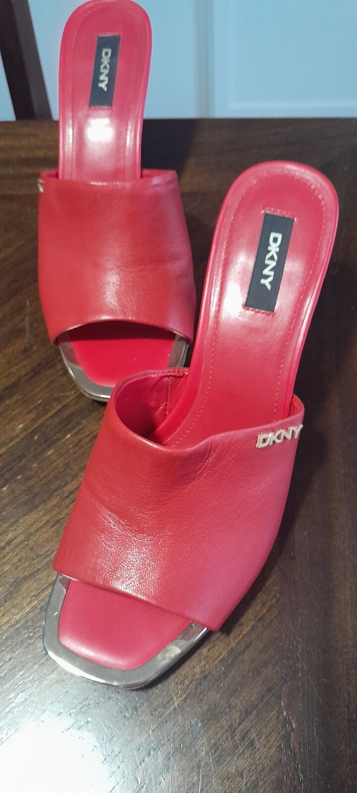 Make a bold statement with these quintessential DKNY Red Heels. Combining the high-energy of a vibrant red finish with the prestige of gold accents, these shoes are designed for the woman who owns the room the moment she enters it. No matter if that moment is in casual jeans or high end, special events in your life you will compete your outfit.