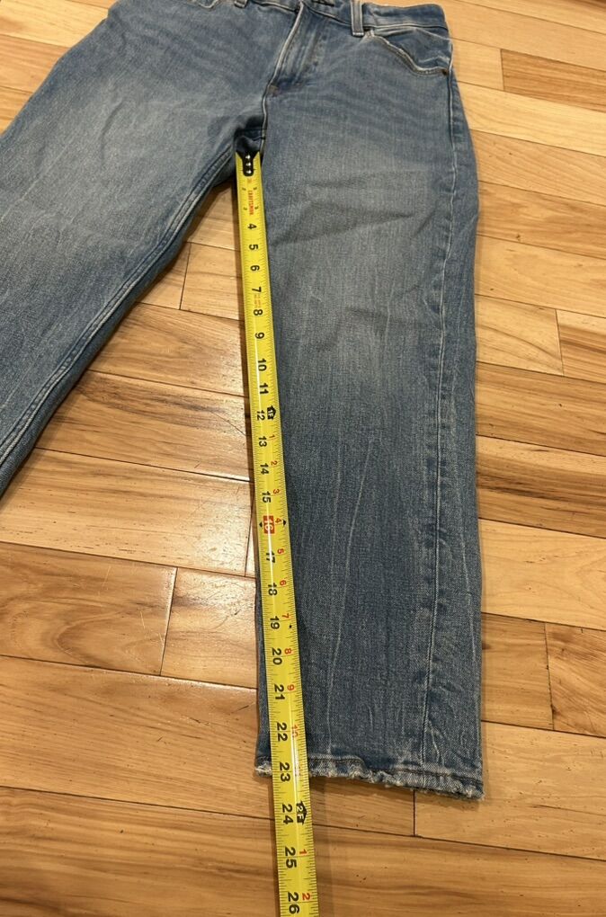 Abercrombie and Fitch The Mom High Rise Curve Love Jeans - women’s size 24 / 00 Short - with distressed hems and button and zipper fly closure - great condition - pre-owned.