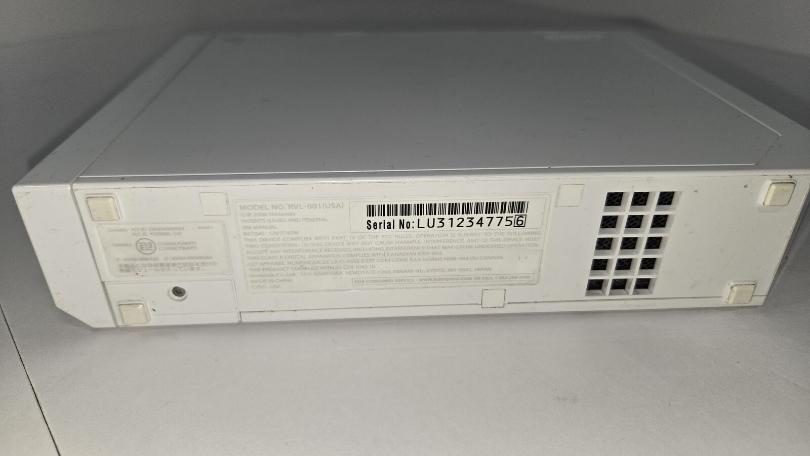 Wii Console WHITE RVL-001 SerNo LU31234775 6 [Gamecube Compatible]