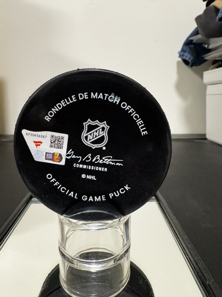 Authentic Clayton Keller autographed official NHL game puck from the Utah Hockey Club inaugural 2024–2025 season. Purchased in-arena. Includes Fanatics/NHL authentication hologram and serial number. Clean signature, excellent condition, display stand included. Great piece for any Utah Hockey or NHL collector.