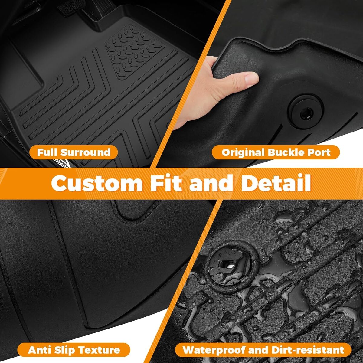 Firm Yet Flexible & Easy To Clean: Raised edges all the way around have been upgraded to the innovative material, allowing the all weather floor mats last long, better protection against spills, way more durable that they won't curl or end up buckling. Also can be easily cleaned in a few minutes.