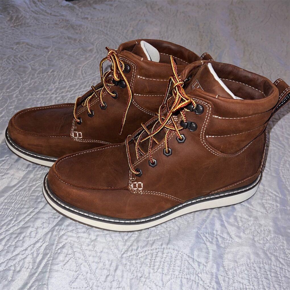 Construction: • Water-resistant Nor'easter leather upper. • Padded collar and gusseted tongue to keep out debris. • Heel pull loop to help with putting boots on. • Synthetic lining is moisture wicking and fast drying. • Lightweight, molded EVA midsole and outsole for lightweight comfort. • Molded rubber perimeter outsole for traction and durability.