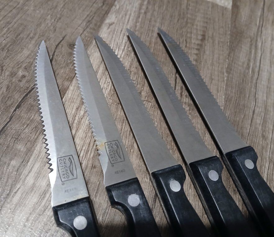 VenmoLightly used steak knives. I have many more of these than actual red meat in my house, which is a constant source of grief for me. So I'm parting with these reminders. A touch or two of rust, but still sharp...and hardly used...sobs internally. $3 for all 5. Cash or venmo. Check out my other listings!