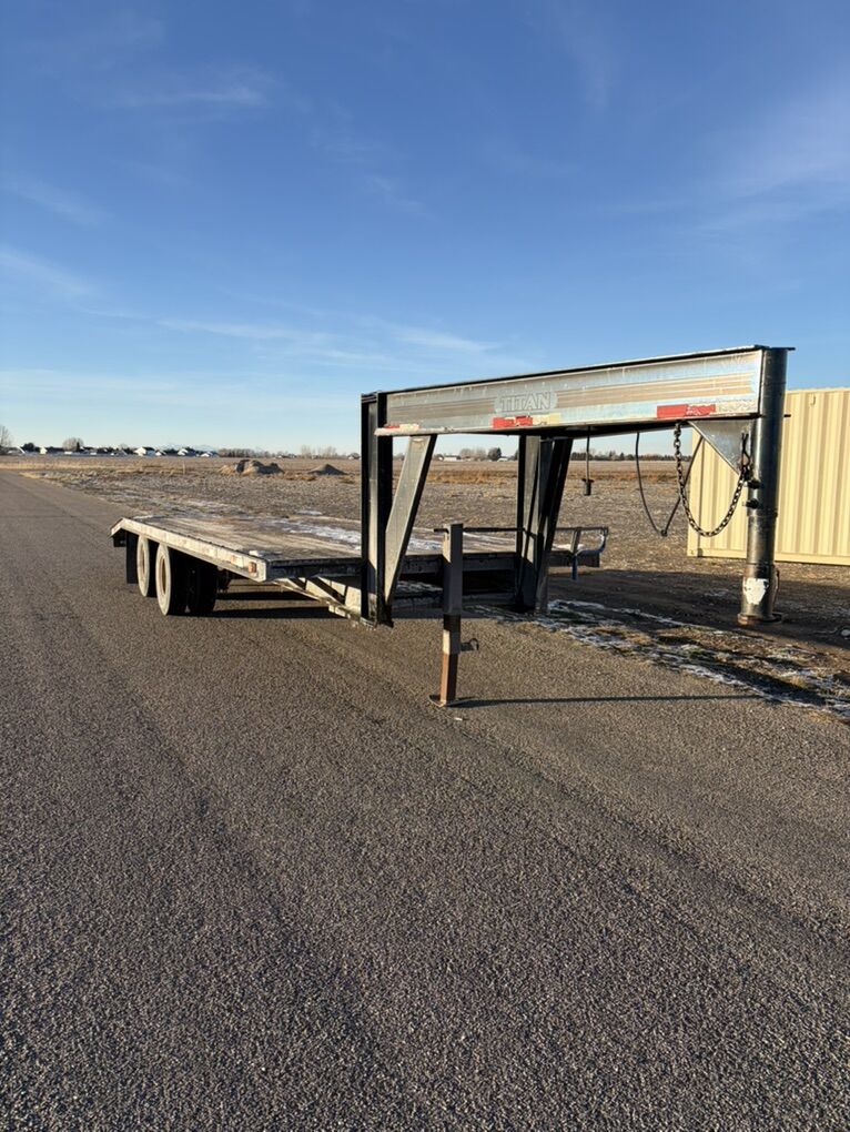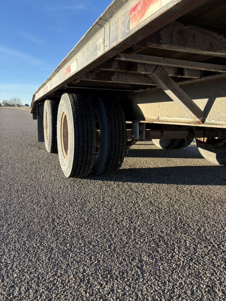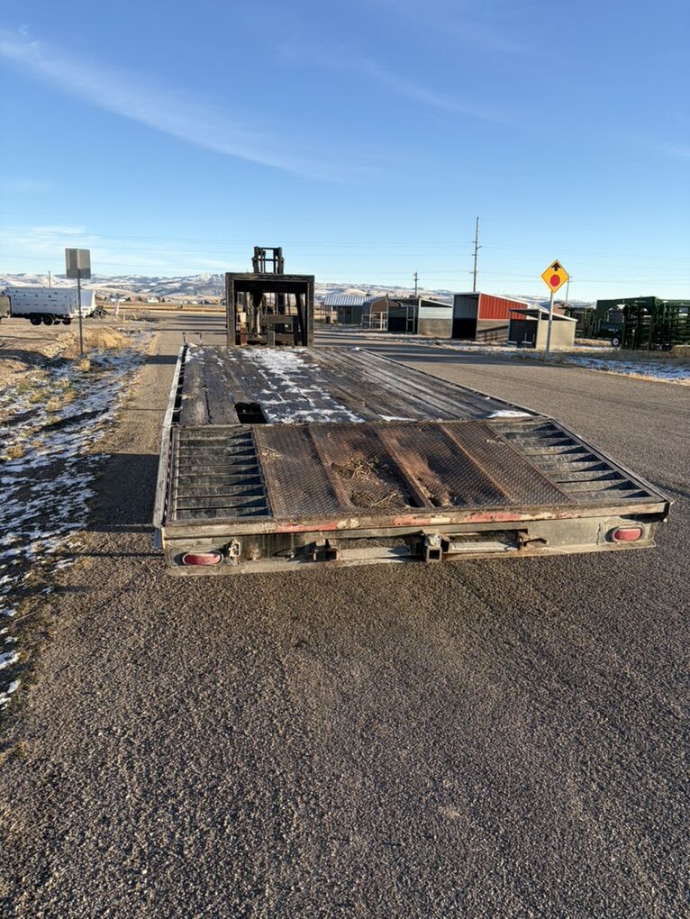Tandem dually flat bed trailer. 26’ trailer. Oil bath axles. Ramps. Back of the trailer lifts up for more deck working space. Tires in good shape. Ready to go work. Call or text Kade at 2082210041. Thanks. Flatbed
