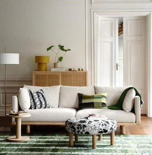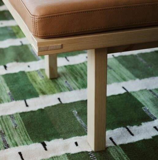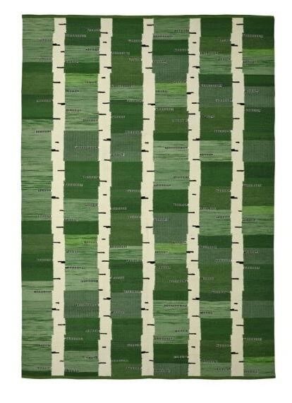 Handwoven wool rug in green with birch tree pattern. Reversible with same stunning pattern on both sides. Part of the STOCKHOLM collection where each piece is a celebration of Scandinavian design.