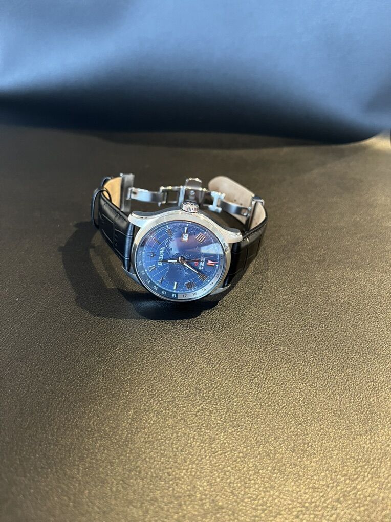 ZelleBULOVA WILTON GMT AUTOMATIC (Model 96B385) For sale is my Bulova Wilton GMT. This is a true traveler's GMT with a jumping local hour hand, featuring a blue world-map dial. This specific model is no longer available on Bulova’s website.
