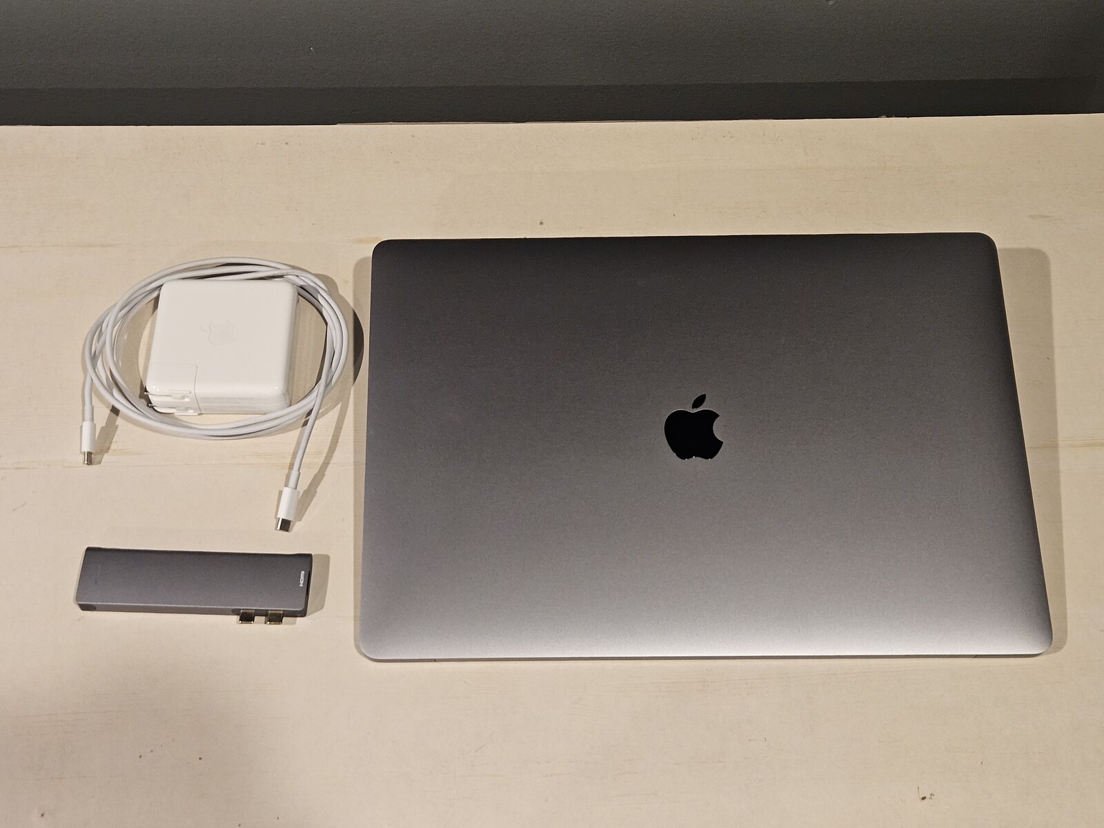 It comes with a hard shell case, the original charger, and a USB hub that clips into the 2 side USB C ports. Super handy to have.