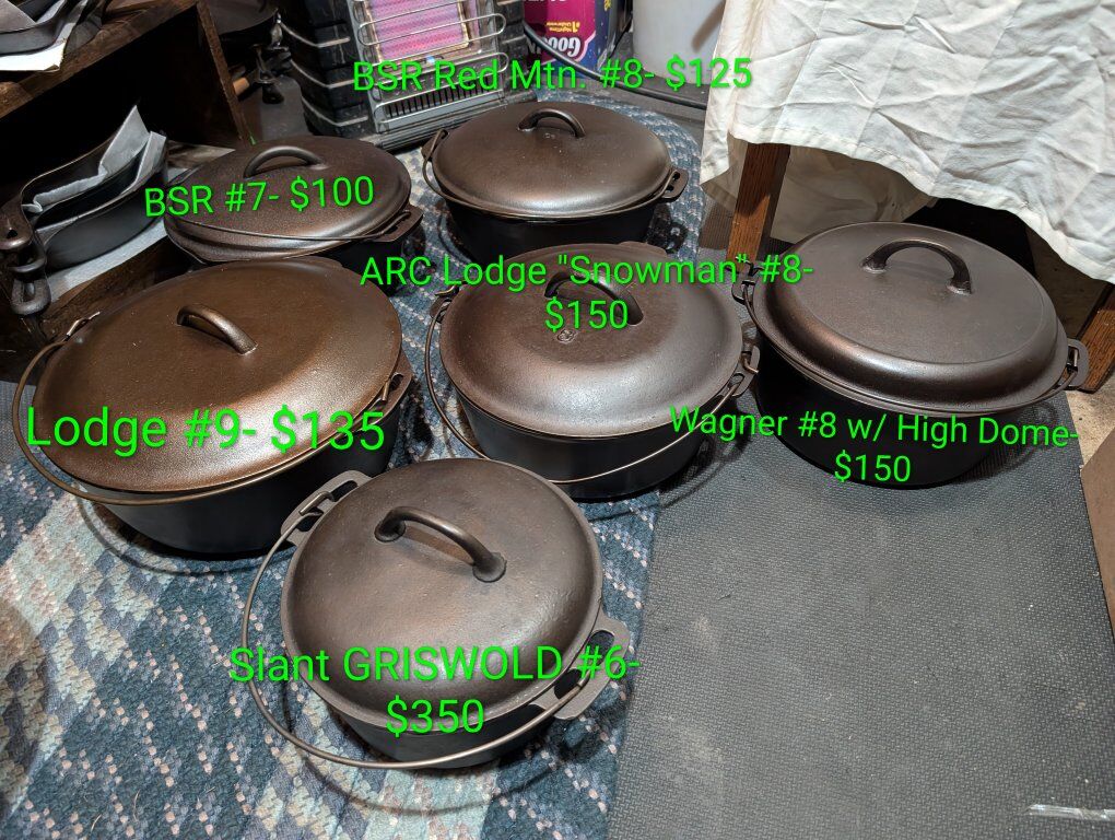 PayPalSee photos as they are the most accurate part of the description & for pricing. Please request any specific additional photos and I'm happy to oblige! These have all been fully restored using approved, non-invasive methods, and reseasoned 3+ times with grapeseed oil, ready to cook! These are all right around 5QT capability, perfect for sourdough! You just can't beat the quality of old cast iron cookware. Wagner, lodge, Griswold, Birmingham Stove & Range, they knew how to do it right... Discounts on multiple items- I'm a bundle guy. No holds without payment. Cash Venmo Cashapp PayPal Located in Smithfield, UT. MESSAGE IF INTERESTED! 🥳 Happy New Year! 🥳
