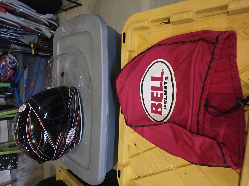 Bell Motorcycle helmet with an extra clear visor and a bag for storage. Size Medium.