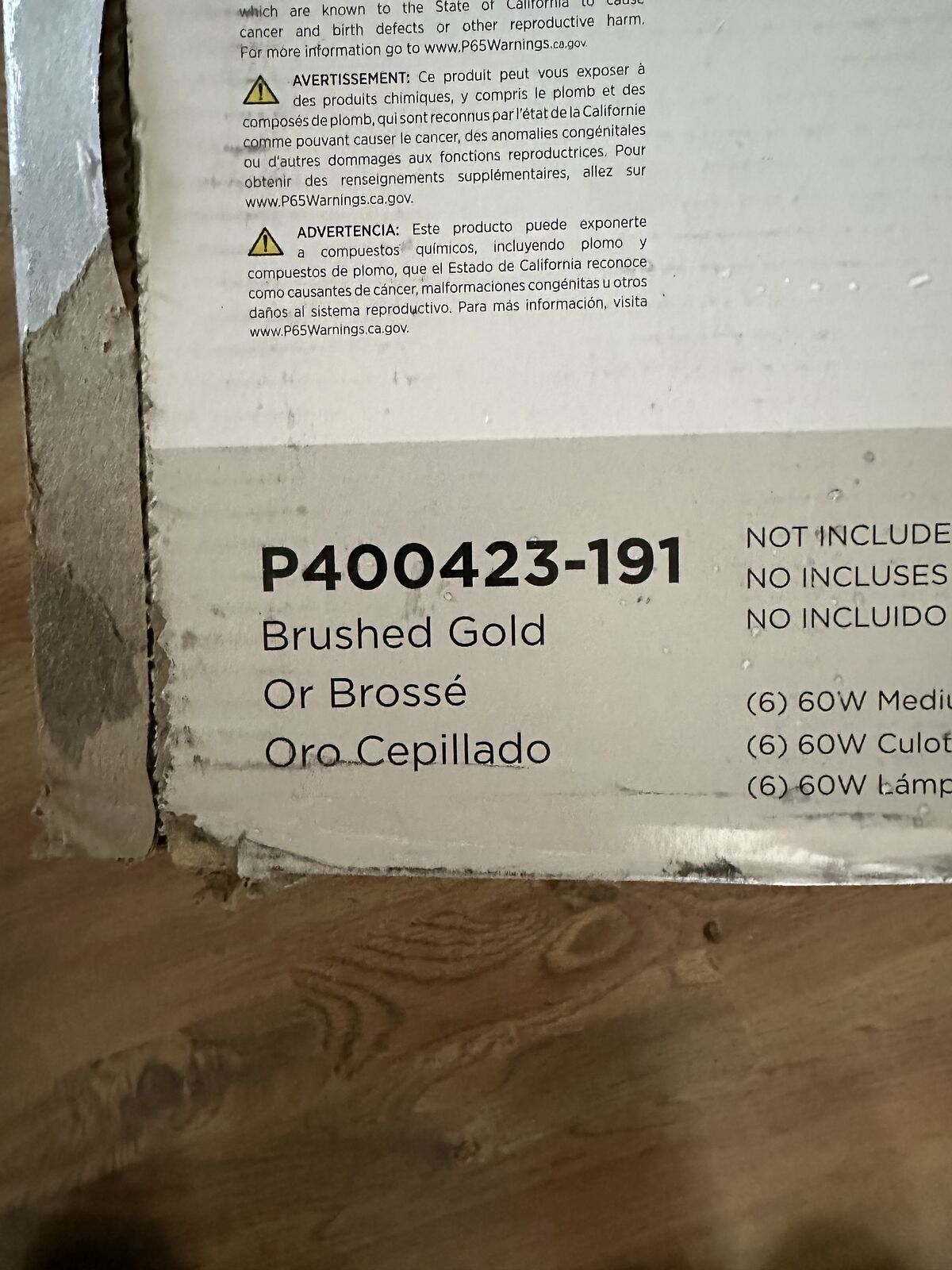 PayPalThis Chandelier is Brand New, still in box. Has six lights. The only problem is that it is missing one glass globe. It looks, and works, great with just bare bulbs. The globes are just decorative. Brand New at Home Depot it is $249