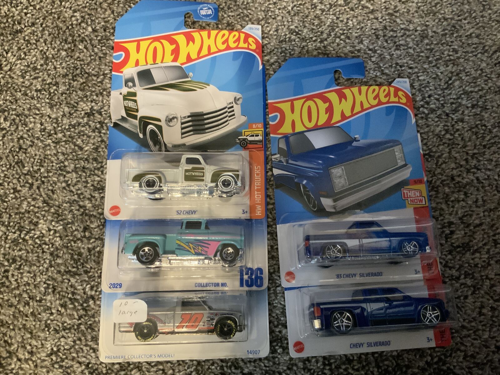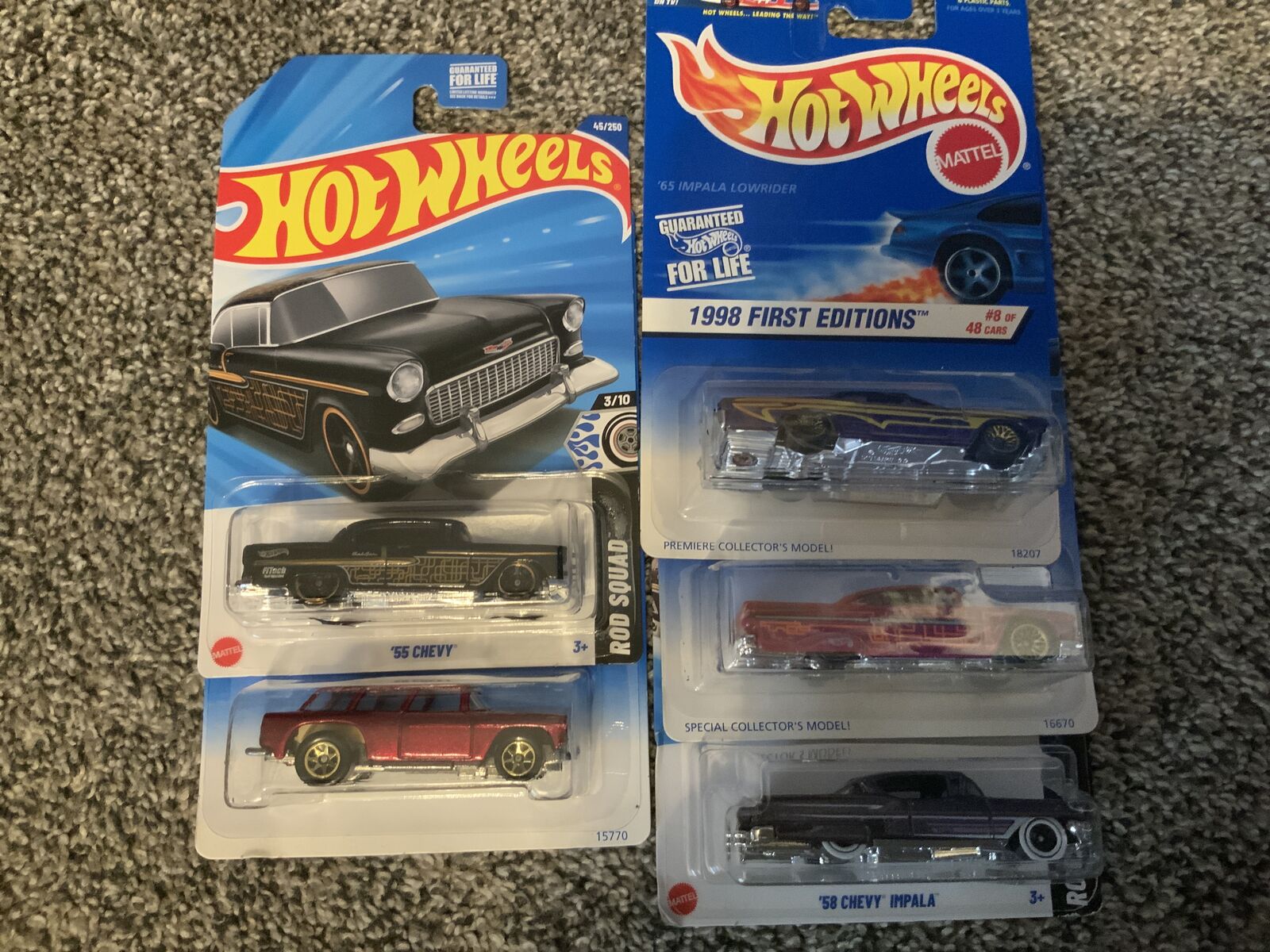 About half of these are vintage cars. This fabulous collection has 5 Corvettes, 5 Trucks. 5 5 full size classic Chevys and 5 Camaros. All are like new, unopened in blister packs. It has a great variety of Chevys and would be perfect for a new collector. I am asking eighty dollars for the entire collection. I answer texts and I live in Nephi. Please see the photos, no disappointments here.