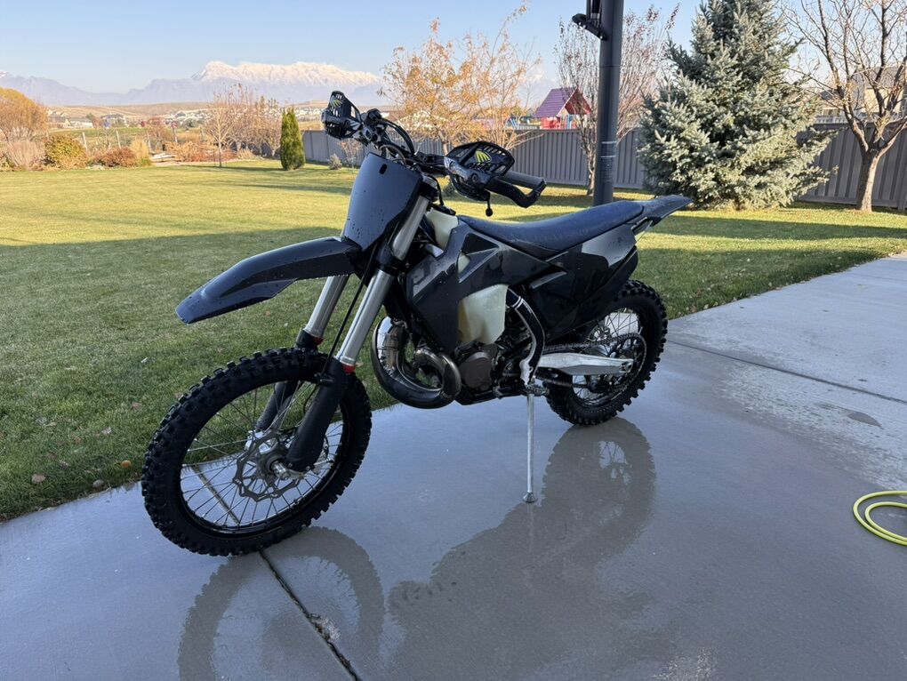 108 hours but new piston at 70 hours Skid plate with linkage guard, carbon pipe guard, Tusk radiator fan and guards, Cycra hand guards, Enduro Engineering rear disk guard