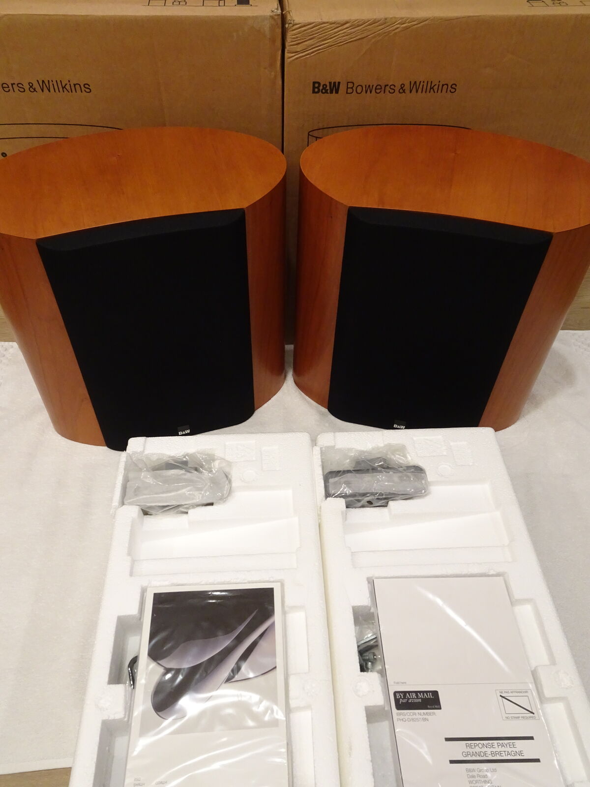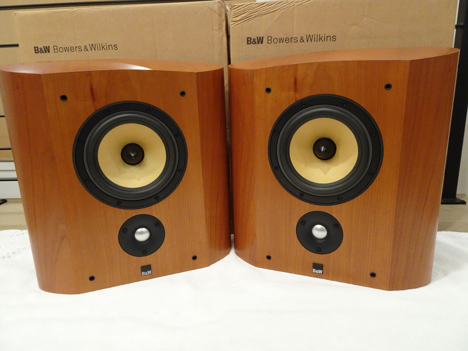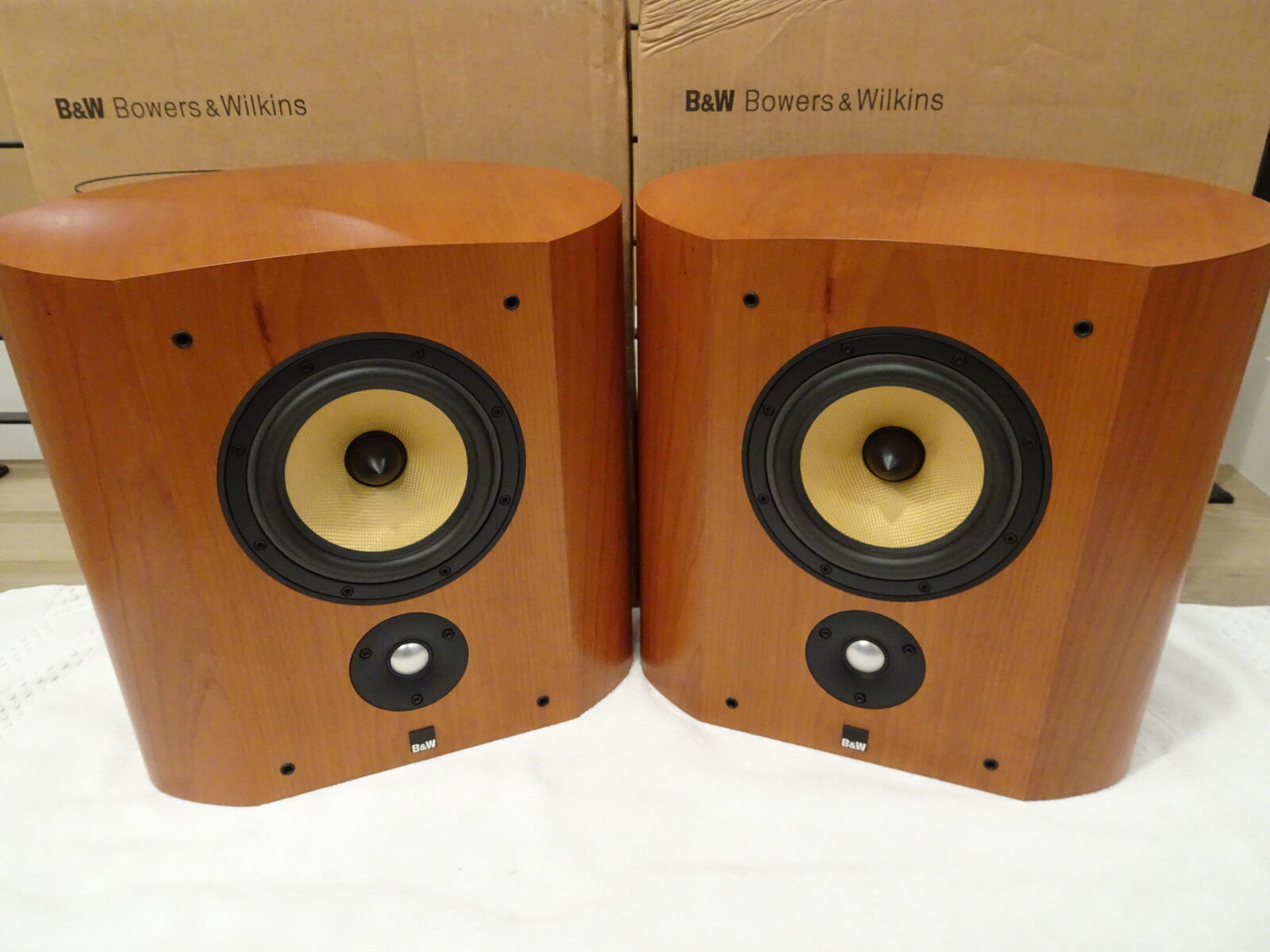 VenmoB&W Bowers & Wilkins SCMS speakers in cherrywood finish with consecutive serial numbers. Each speaker includes all original components (B&W wiring, grills, manual, mounting template, wall mount bracket and screws/tools) and the original box and packaging. Both speaker grills are pristine and have never been used. The wall mount brackets have wear from mounting. "The SCMS features essentially the same driver complement as the 805S. It's a 2-way system with a Kevlar cone base / midrange and aluminum dome tweeter." --B&W Original owner, used in a non-smoking, no-pet environment. The speakers are in excellent condition and sound great! I have two pairs available. Use as surround speakers or use two pairs as fronts and rears.