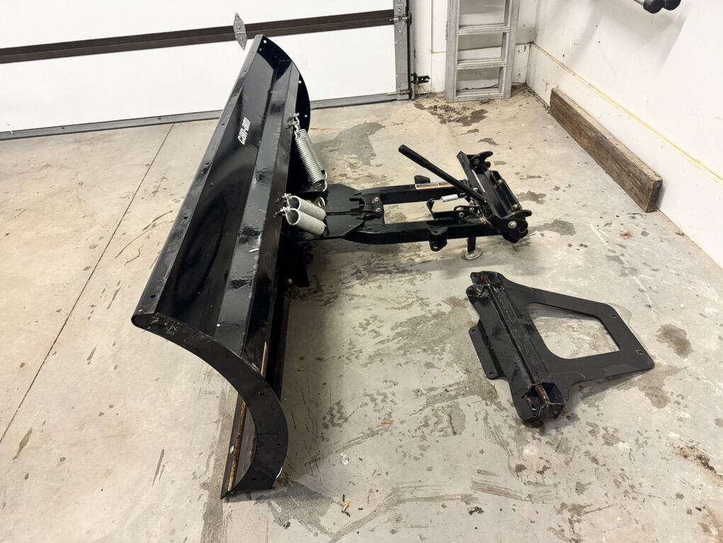 Venmo72” Canam snowplow and mounting bracket. It was on our 2017 Defender max, but we sold it to someone in So Utah so they didn’t need the plow. Once mounting bracket is on, it is simple to put on and take off. The winch lifts and lowers the plow, and it has a manual angle adjustment. In good condition and works great. Text is best.