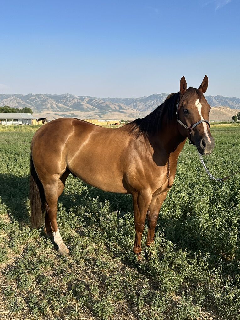 • Cut his ear as a 2-year-old, so he’s a bit ear-shy — still halters and bridles fine, just doesn’t want you messing with them much. • Could use a little more time crossing water, but he’s no dummy and will figure it out quick.