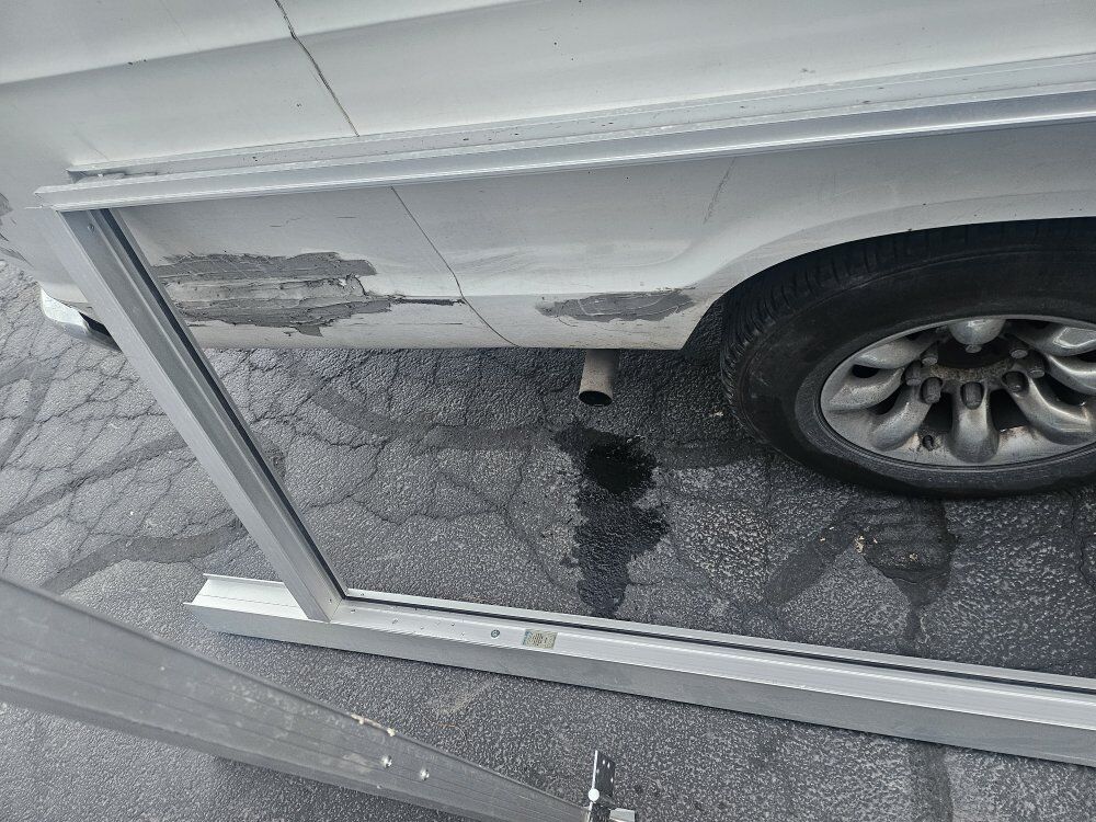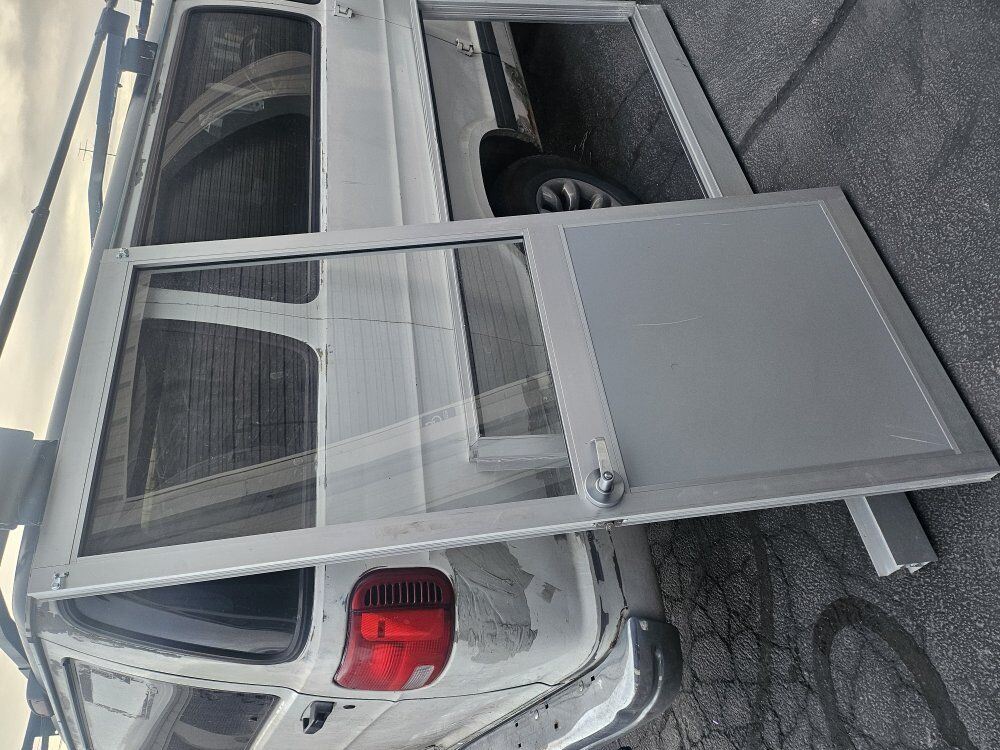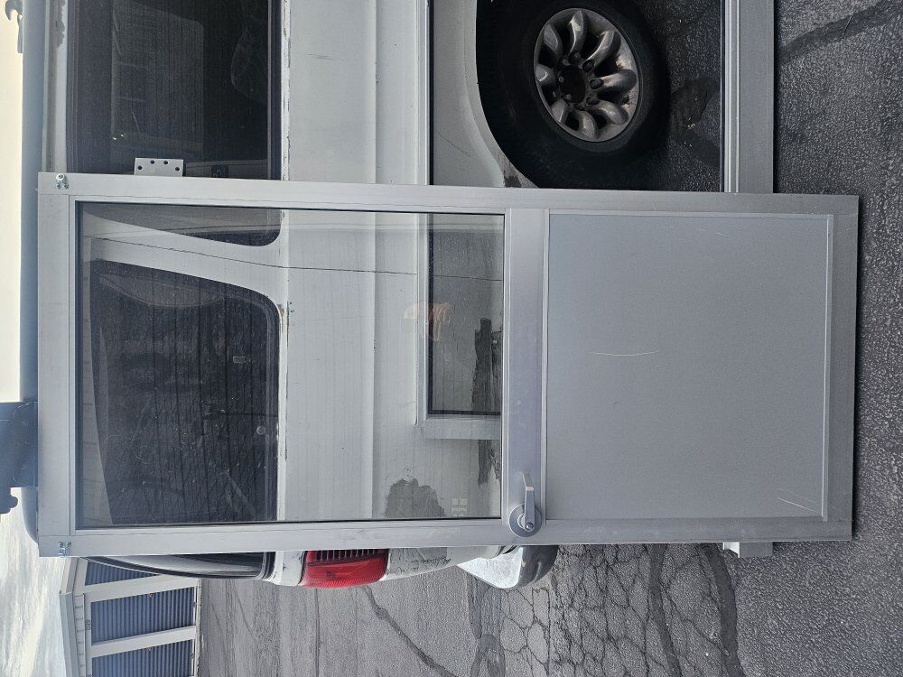 Aluminum door has the original frame.
