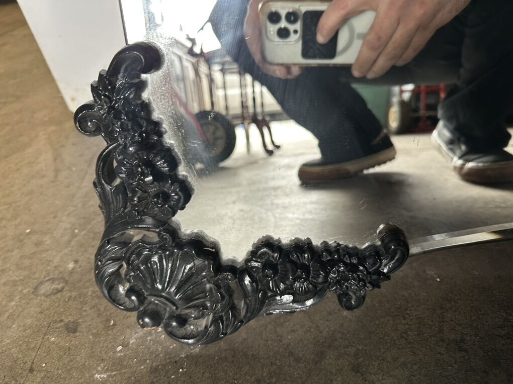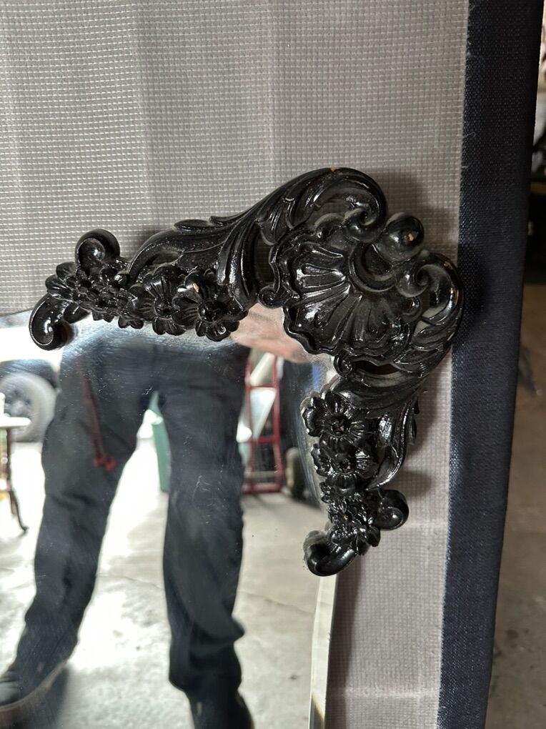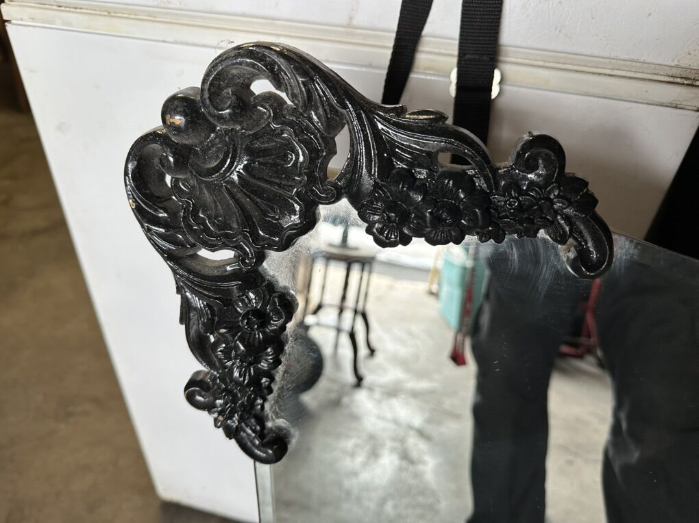 Large 35x52 Vintage French Louis XVI Style Black Rococo Wall Mantle Mirror Bassett