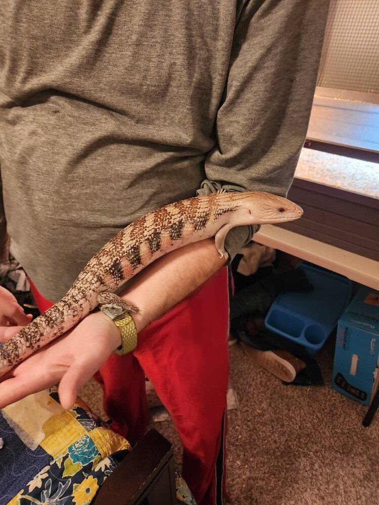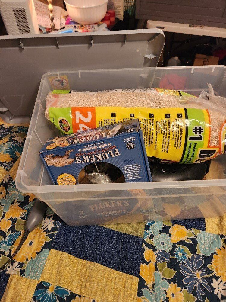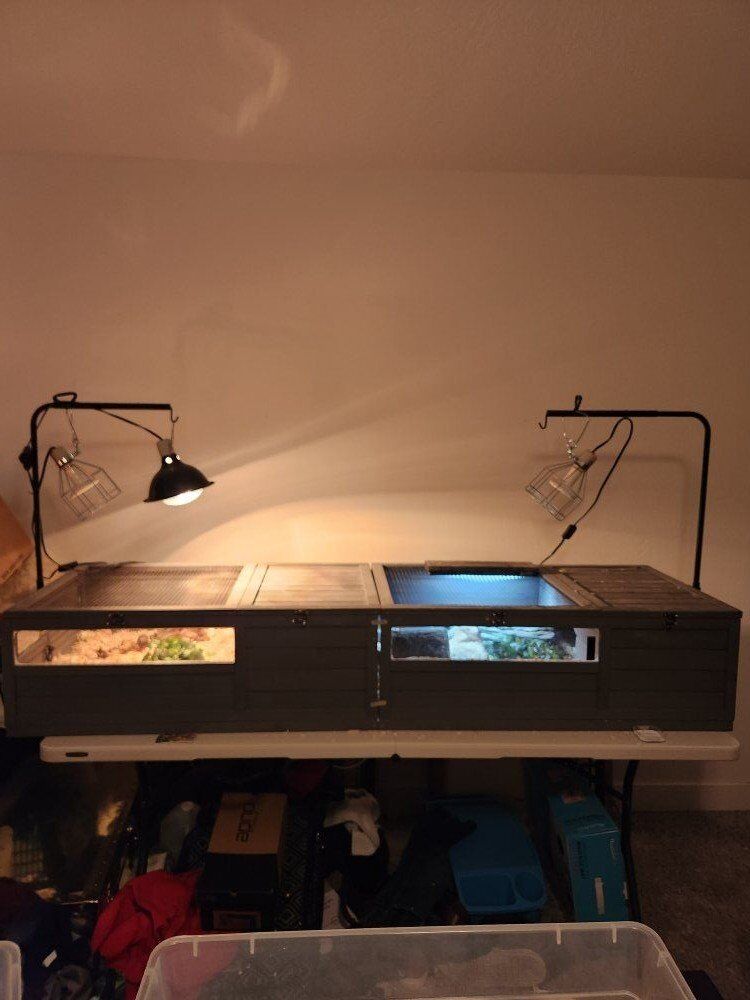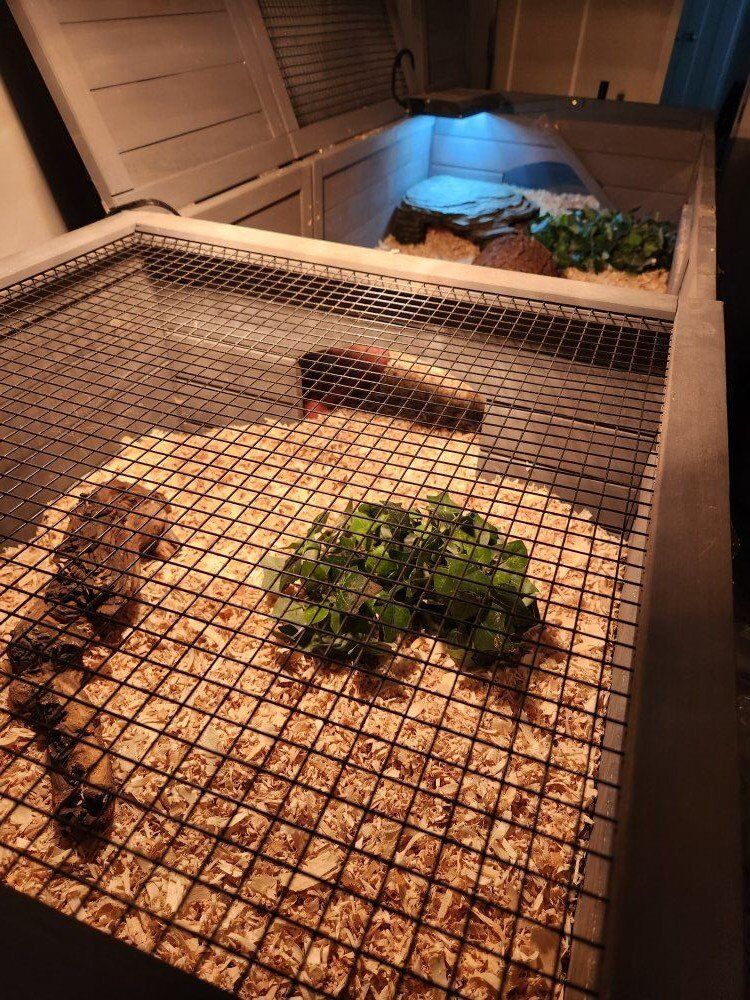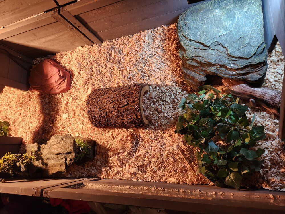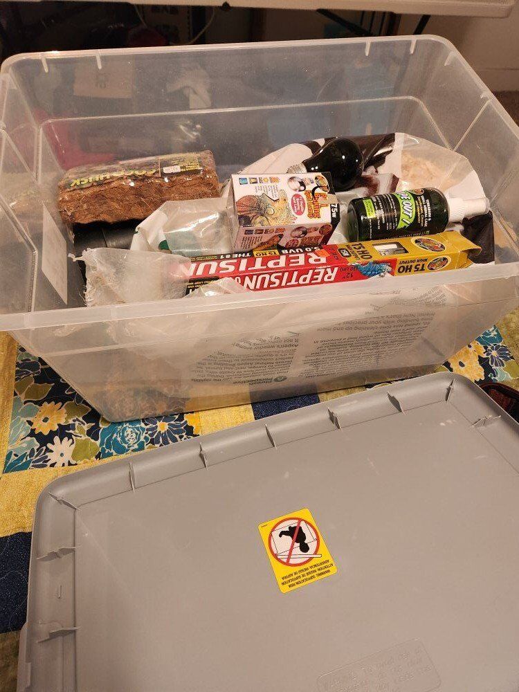 CashAppThis is Hufflepuff. Not sure it's male or female, but we've just been assuming it's a girl. We purchased her in 2020, so she's roughly 5 years old. We are looking to rehome her because we just don't have the room for her, and she basically borrows most of the time. She's very easy to take care of. She eats grain free wet puppy food. She comes with everything shown in the pictures. Her bedding is fresh and she's ready to go. The terrarium is 76"×22.5"×13". If you have any other questions, feel free to message me.